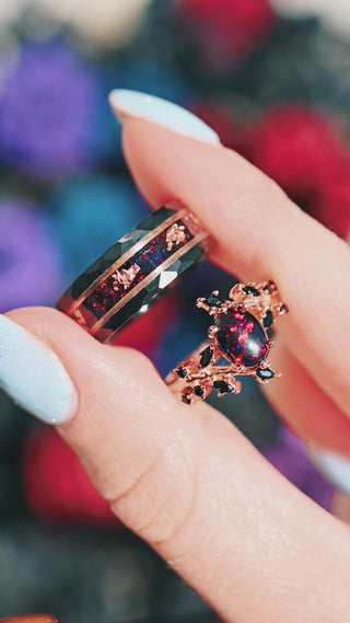 Black Fire Opal & Onyx Leaf Ring in 14K Rose Gold Vermeil