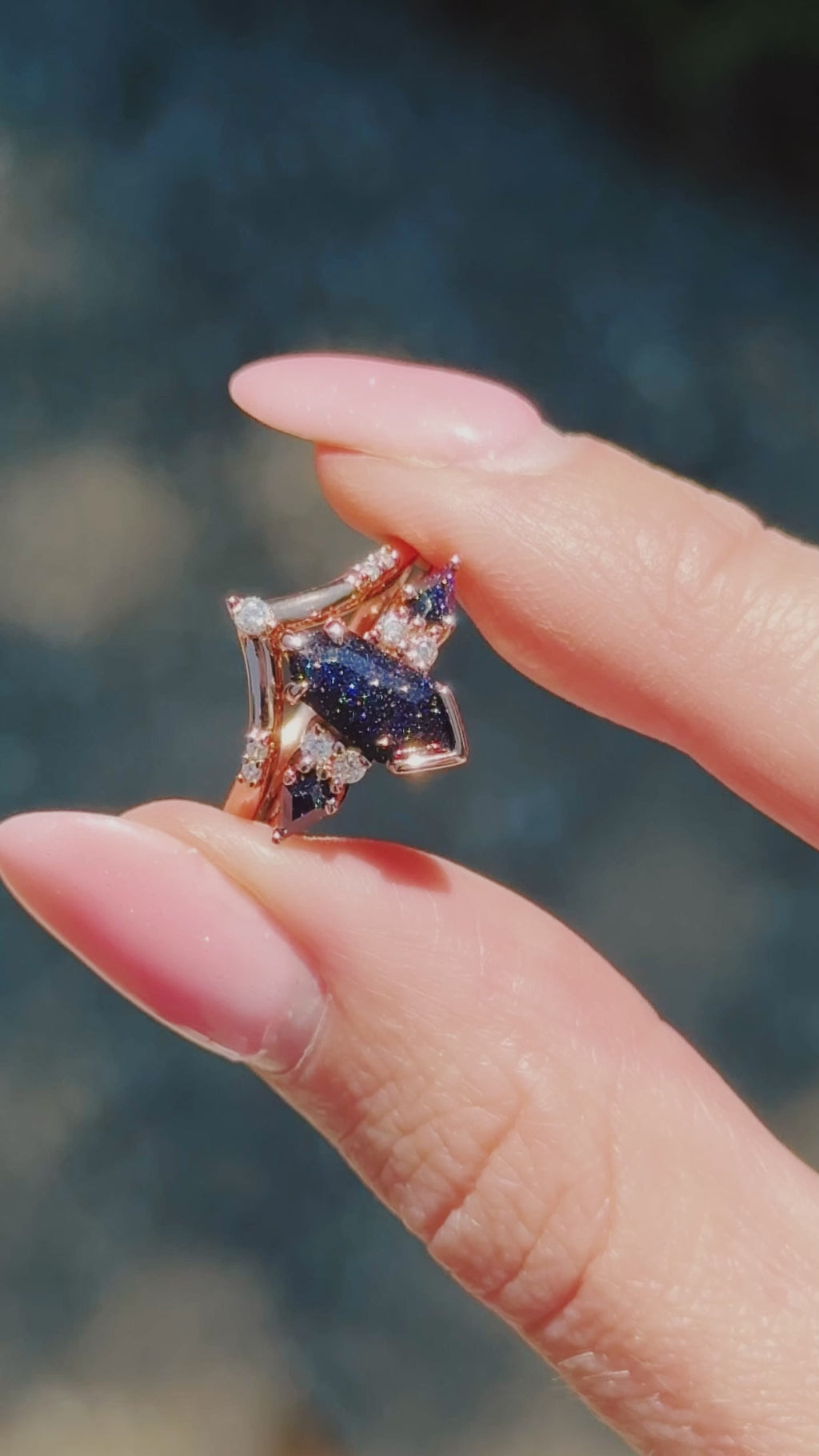 Kite Galaxy Sandstone (Starry Night) Ring Set- 14K Rose Gold Vermeil