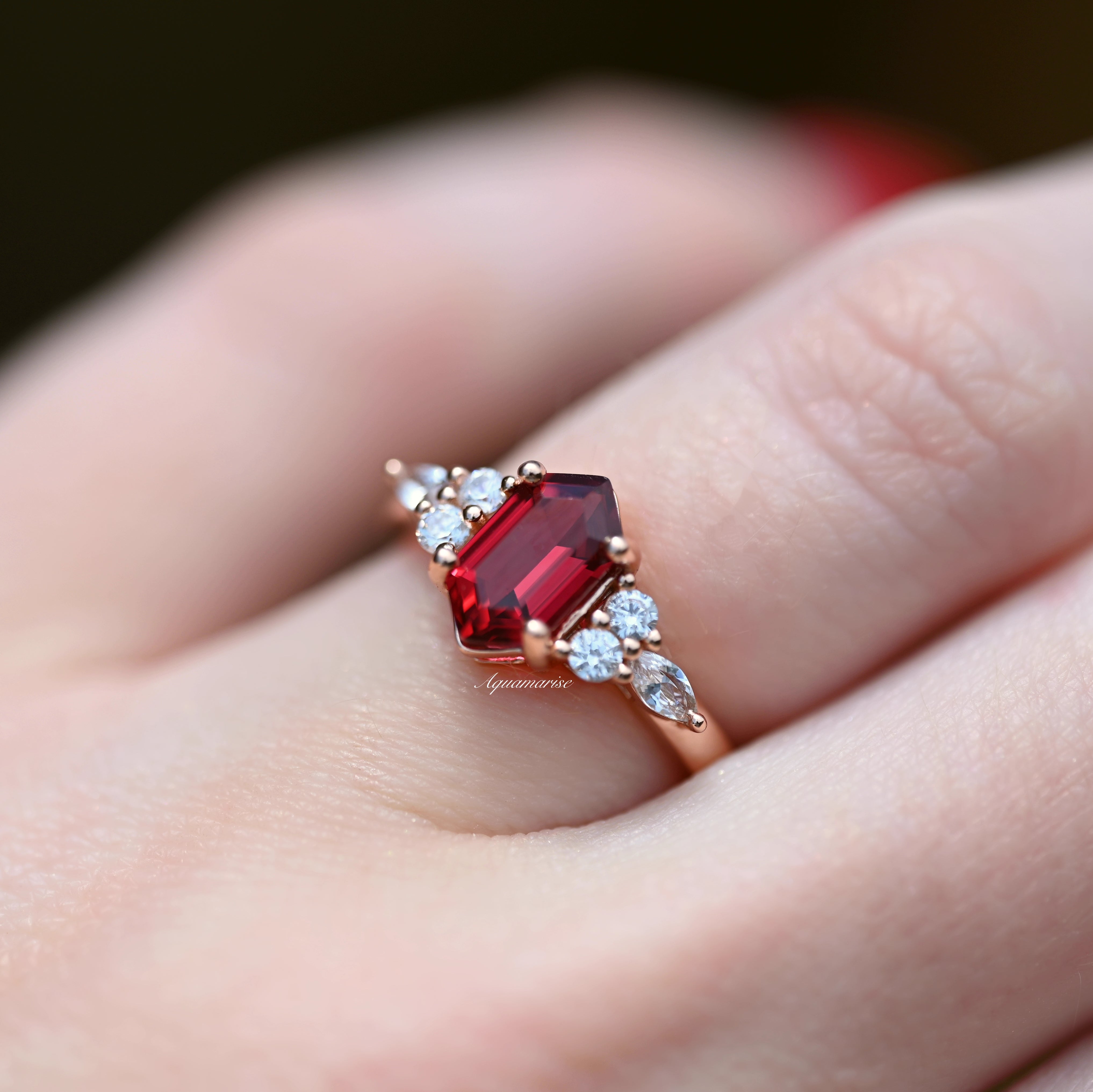 Sonnet Hexagon Ruby Ring- 14K Rose Gold Vermeil