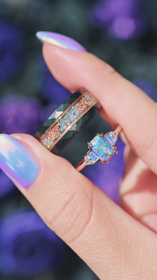 Light Blue Fire Opal & Opalescent Sapphire Engagement Ring in 14k Rose Gold Vermeil