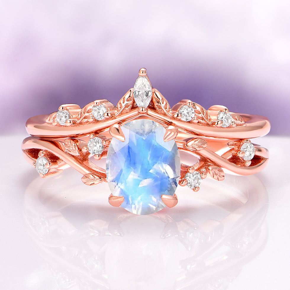 Natural Moonstone Fairy Engagement Ring Set in 14K Rose Gold Vermeil