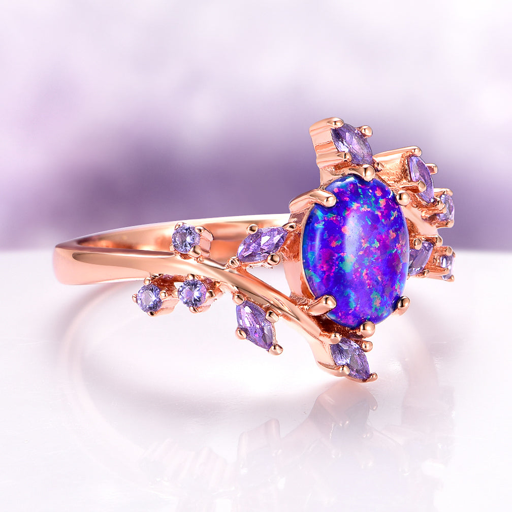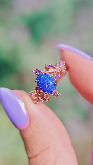 Starry Night Blue Fire Opal & Sapphire Ring in 14K Rose Gold Vermeil