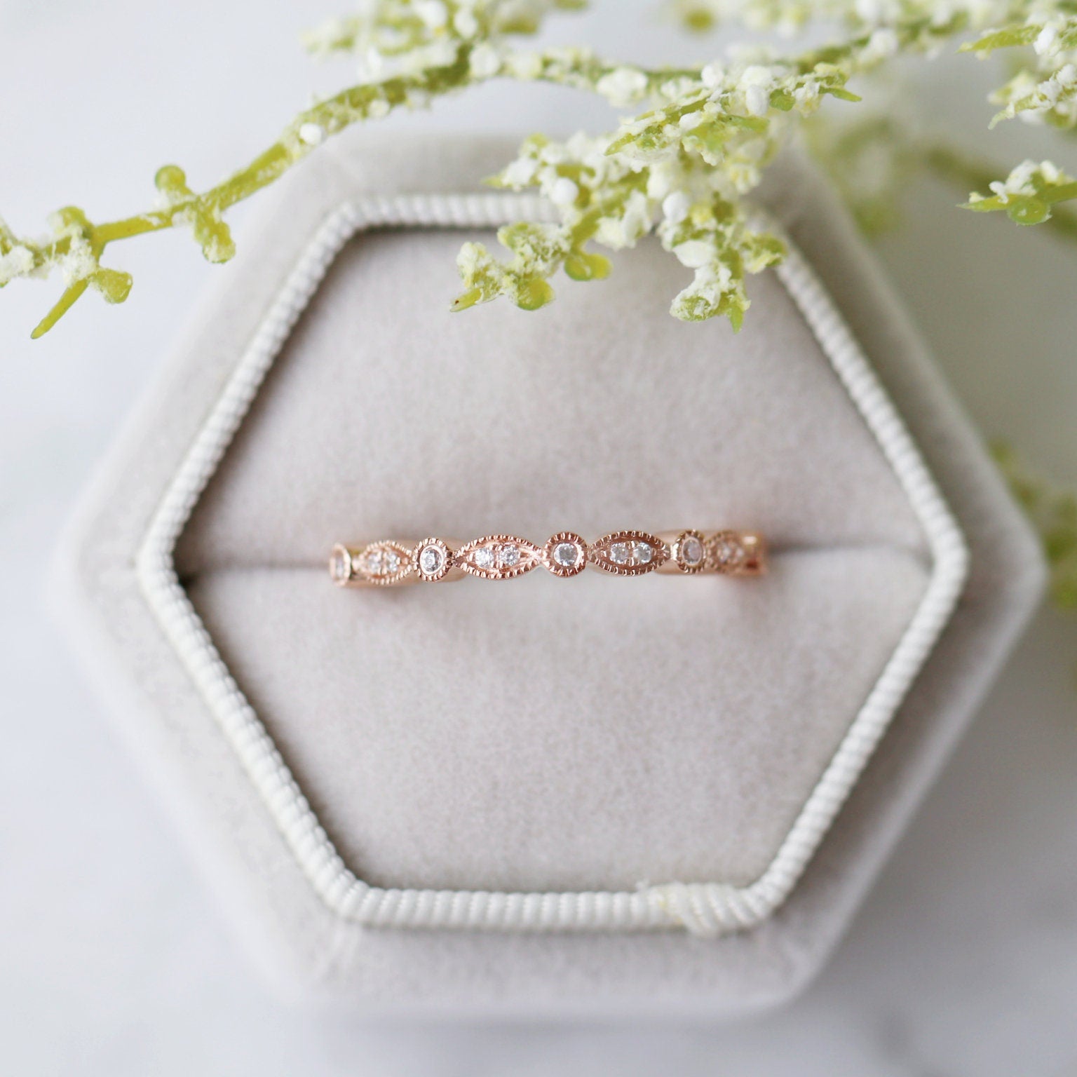 Art Deco Milgrain Wedding Band in 14K Rose Gold Vermeil