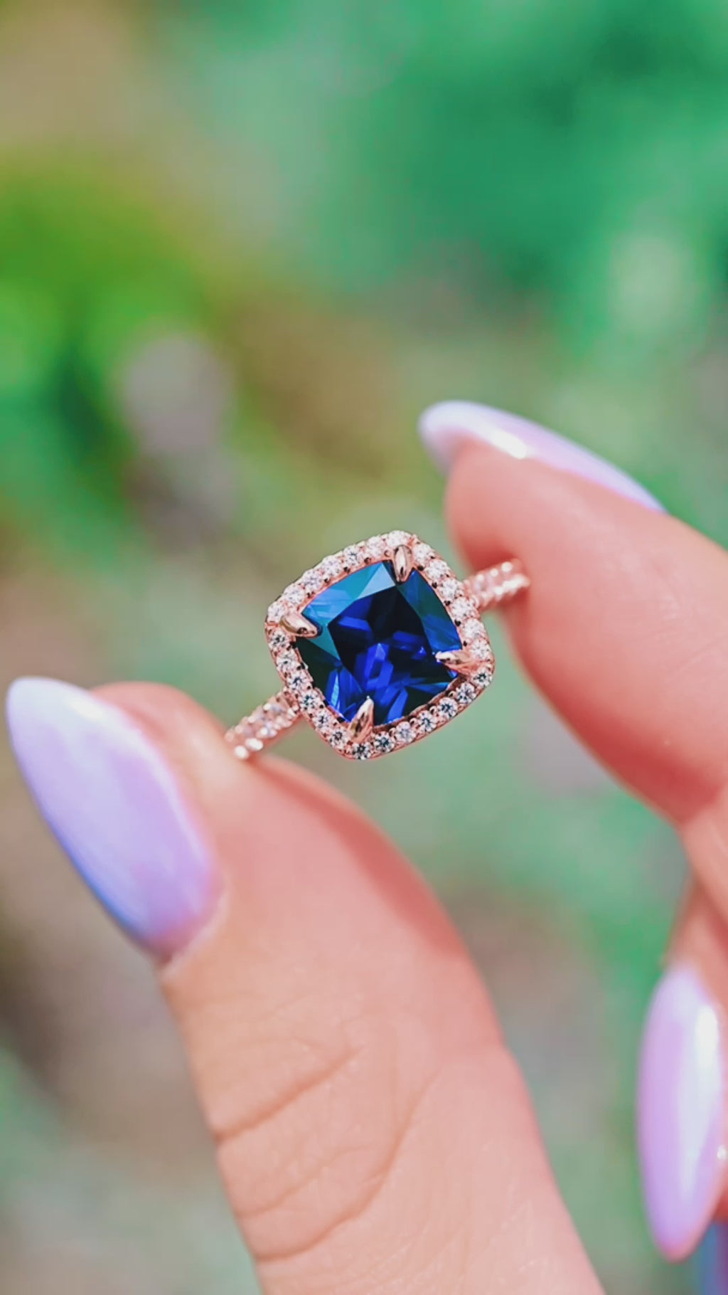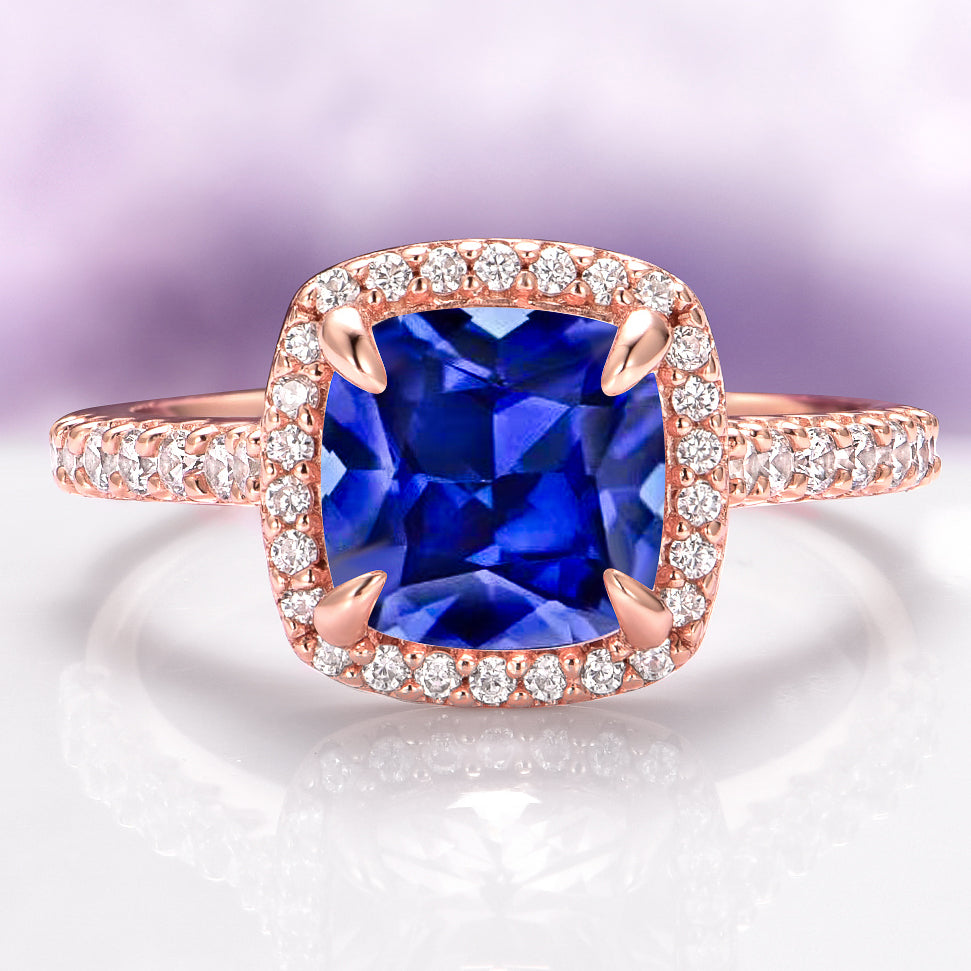 Belle Cushion Blue Sapphire Ring in 14K Rose Gold Vermeil