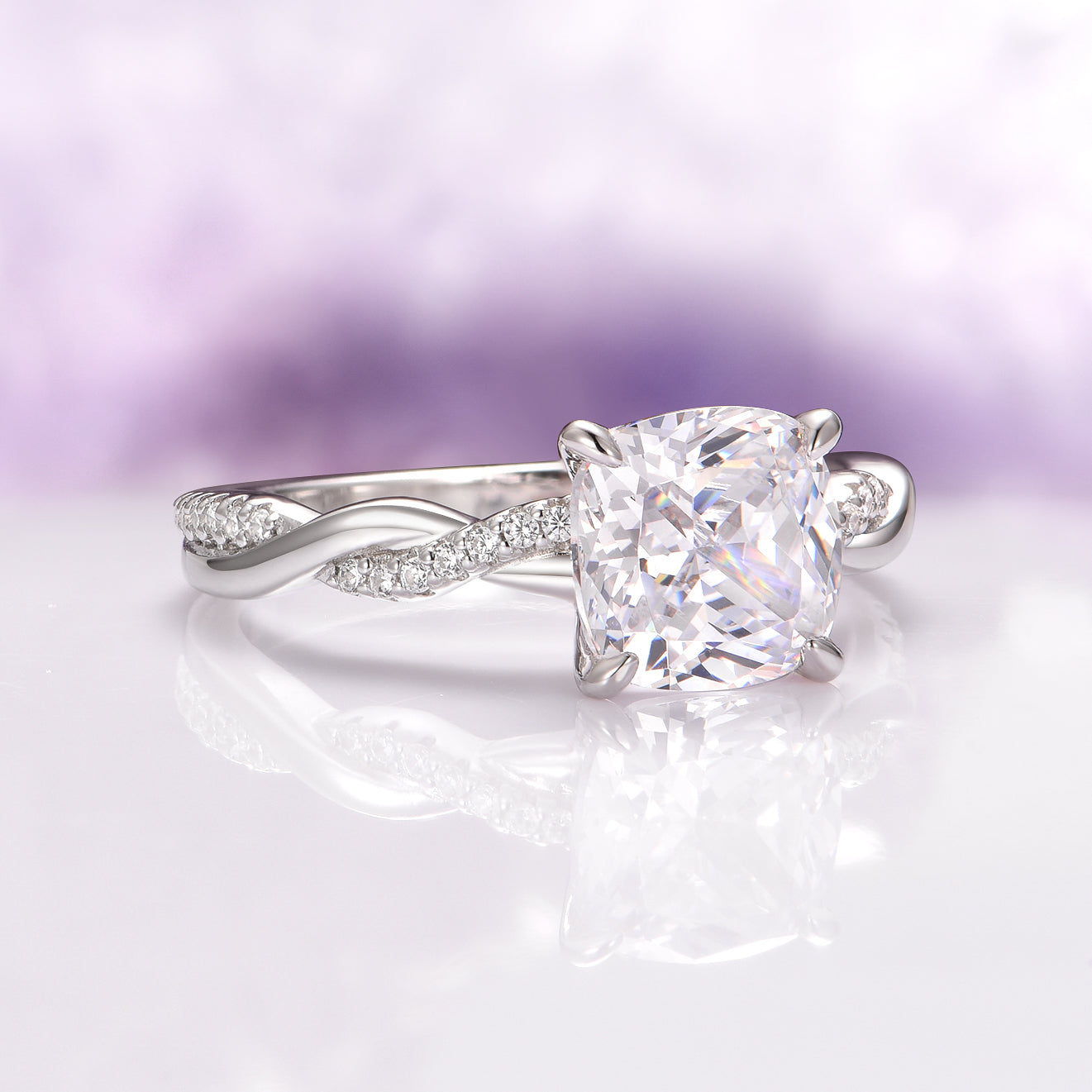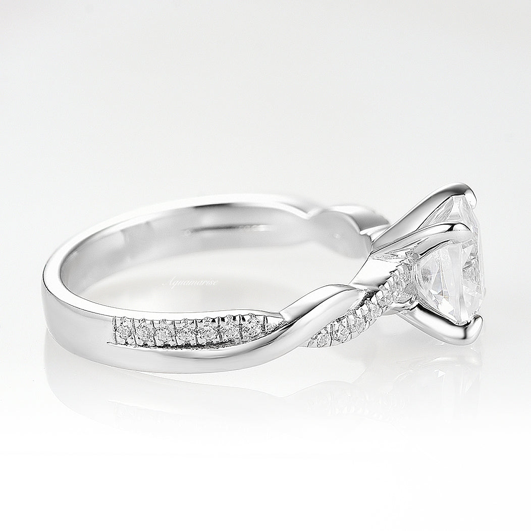Cushion Cut White Sapphire Engagement Ring – Twisted Vine Sterling Silver Ring – Lab-Grown Sapphire Promise Ring – Nature-Inspired Wedding Jewelry