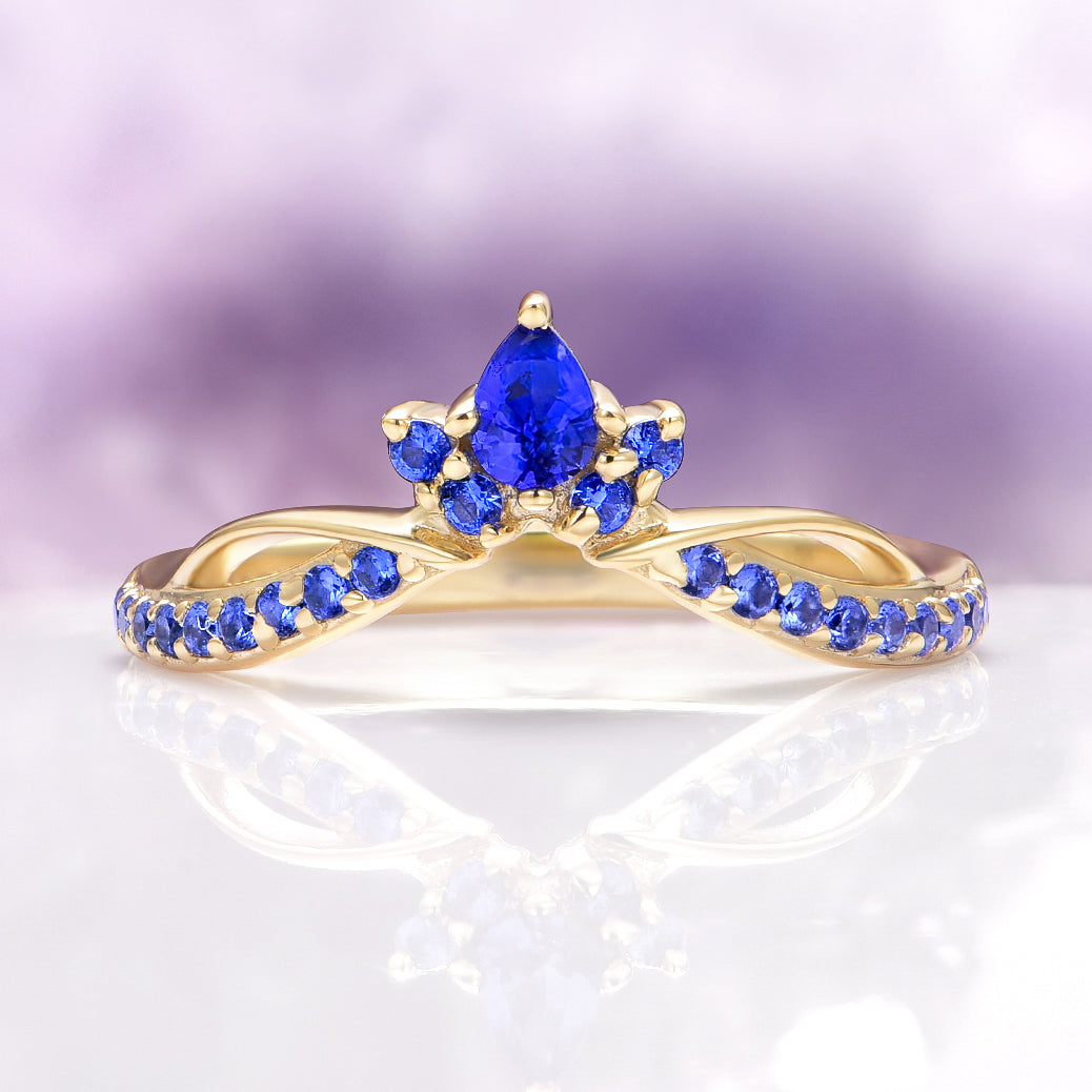 Step into a world of enchantment with this Feyra Blue Sapphire and Lab-Grown Diamond Engagement Ring Set in 14K solid yellow gold. Designed for the woman who dreams of magic and elegance, this set perfectly blends whimsy with timeless sophistication.