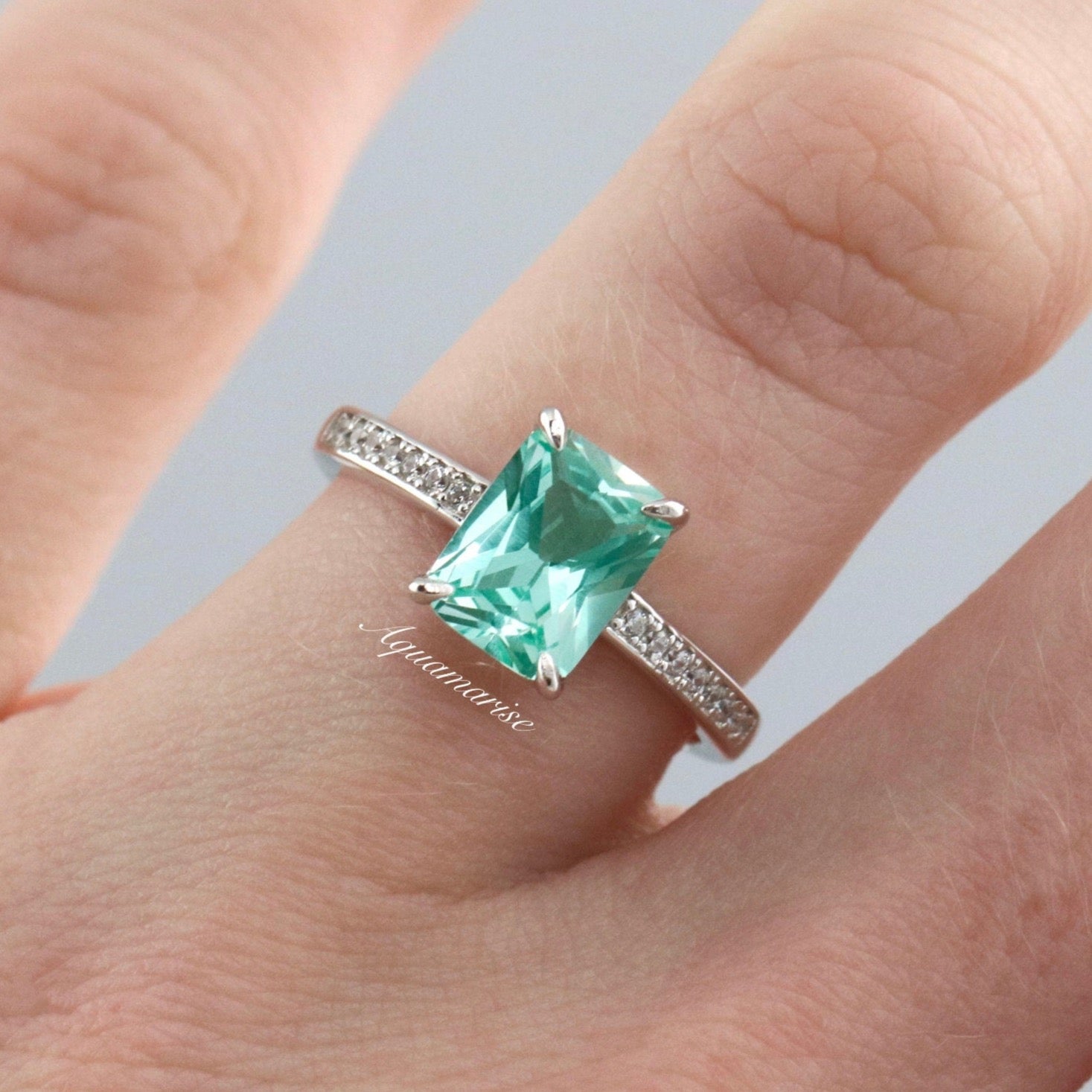 Ava Emerald Cut Mint Green Sapphire Ring in Sterling Silver
