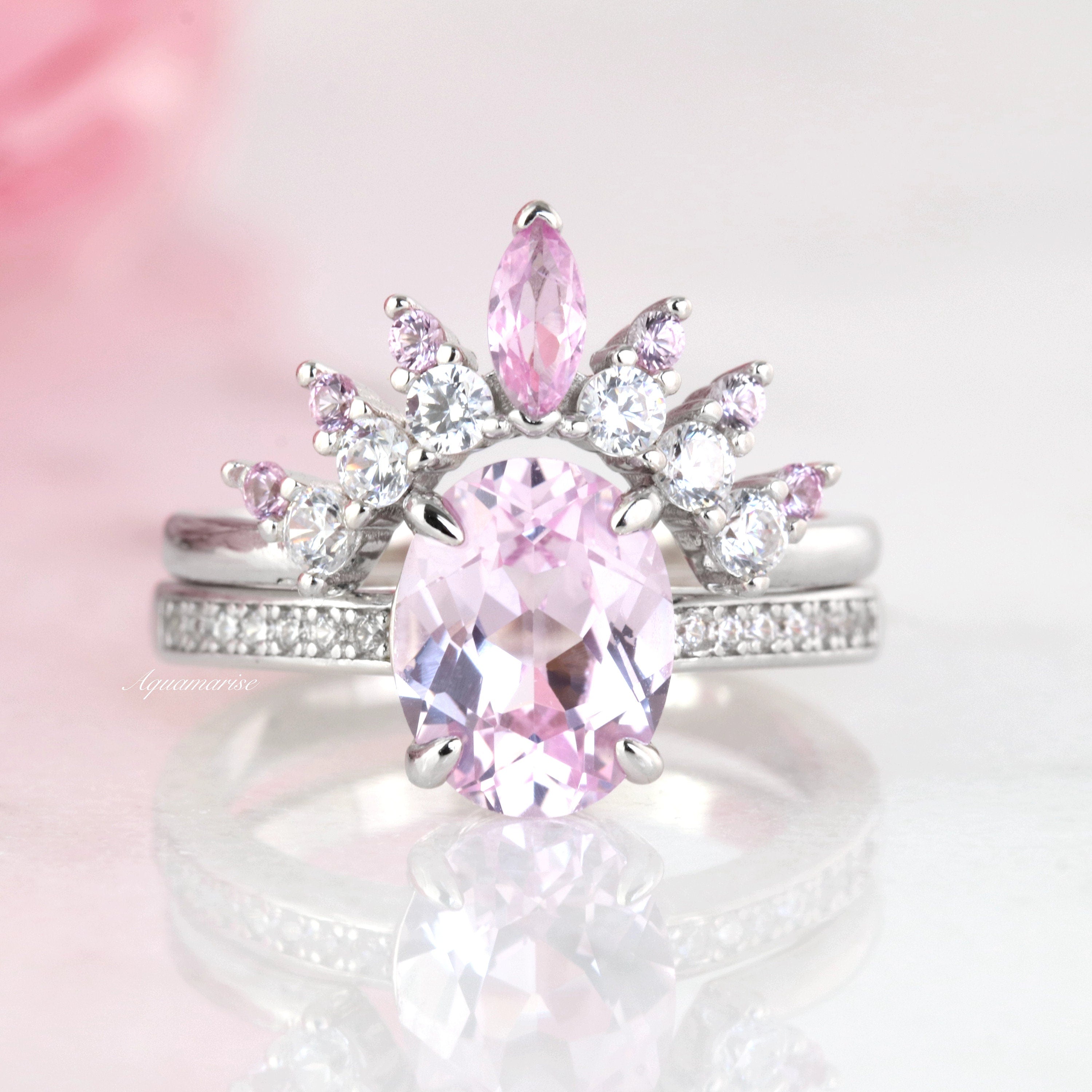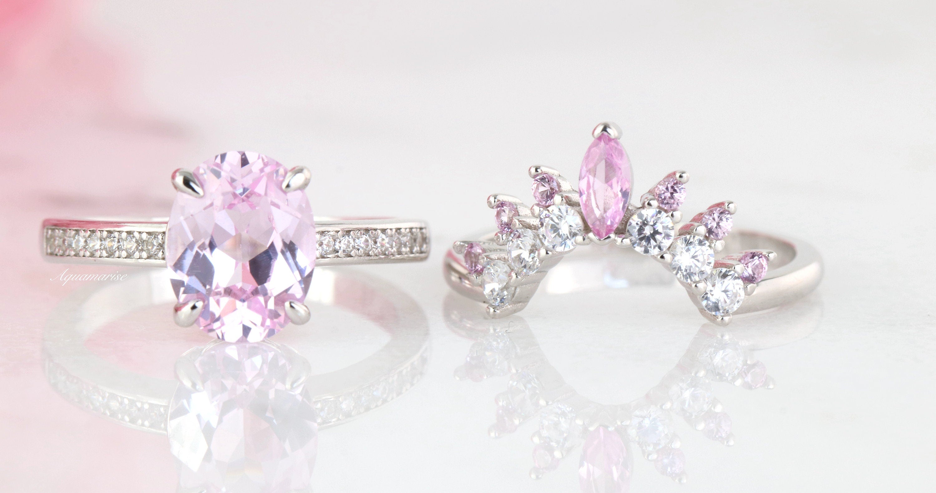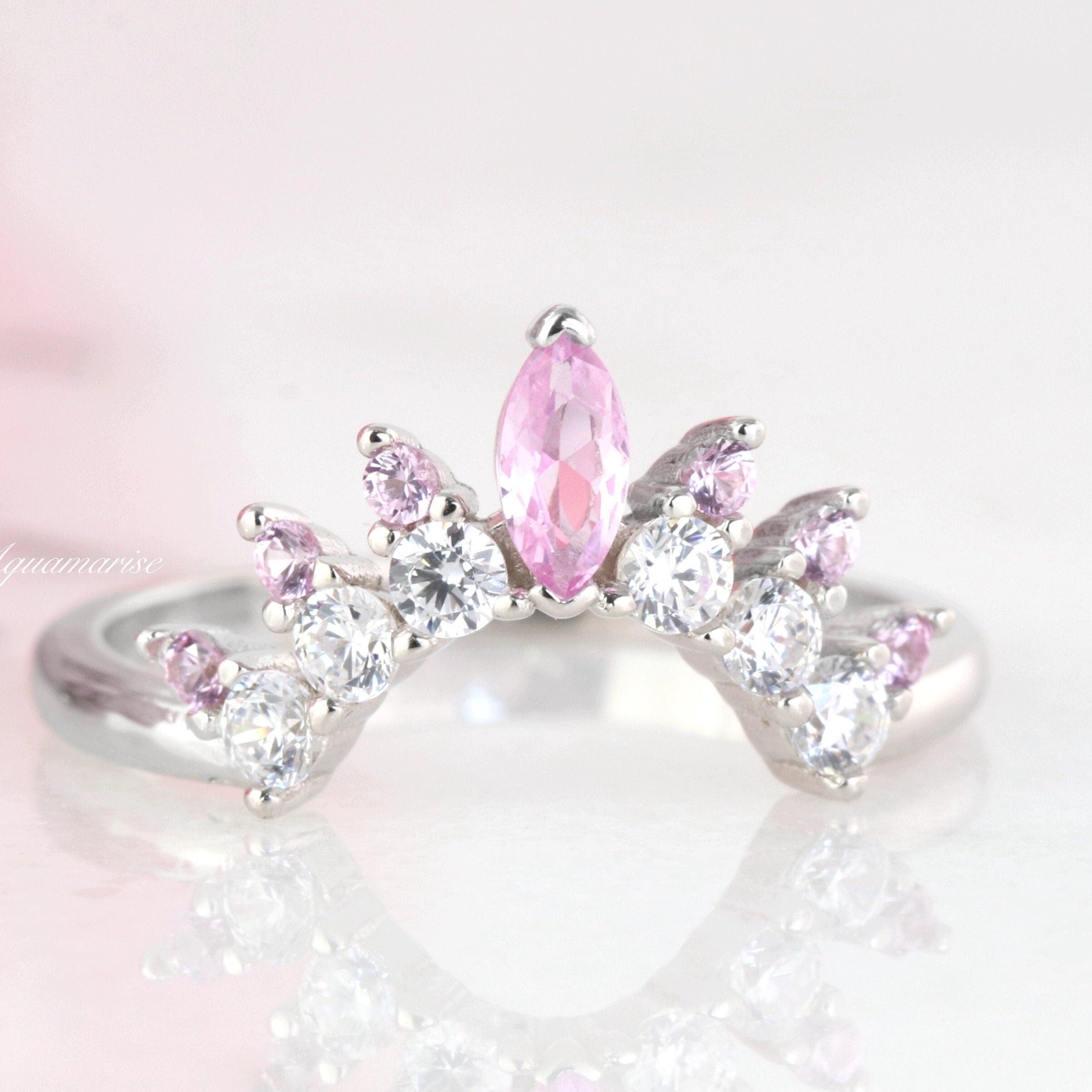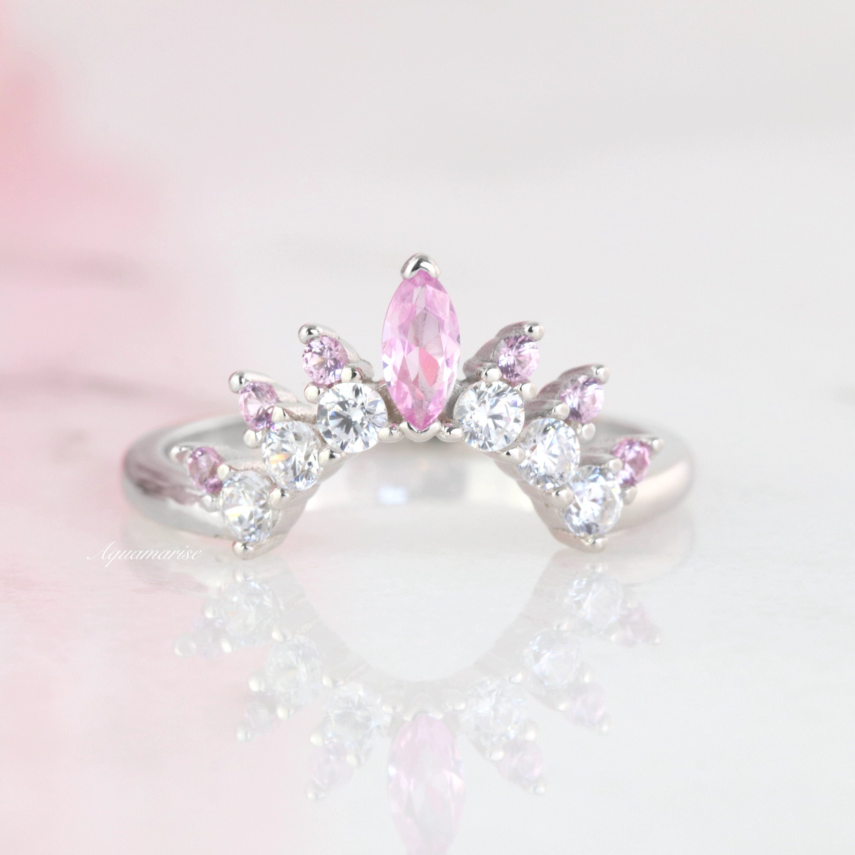Tiara Pink Sapphire Curved Band- Sterling Silver