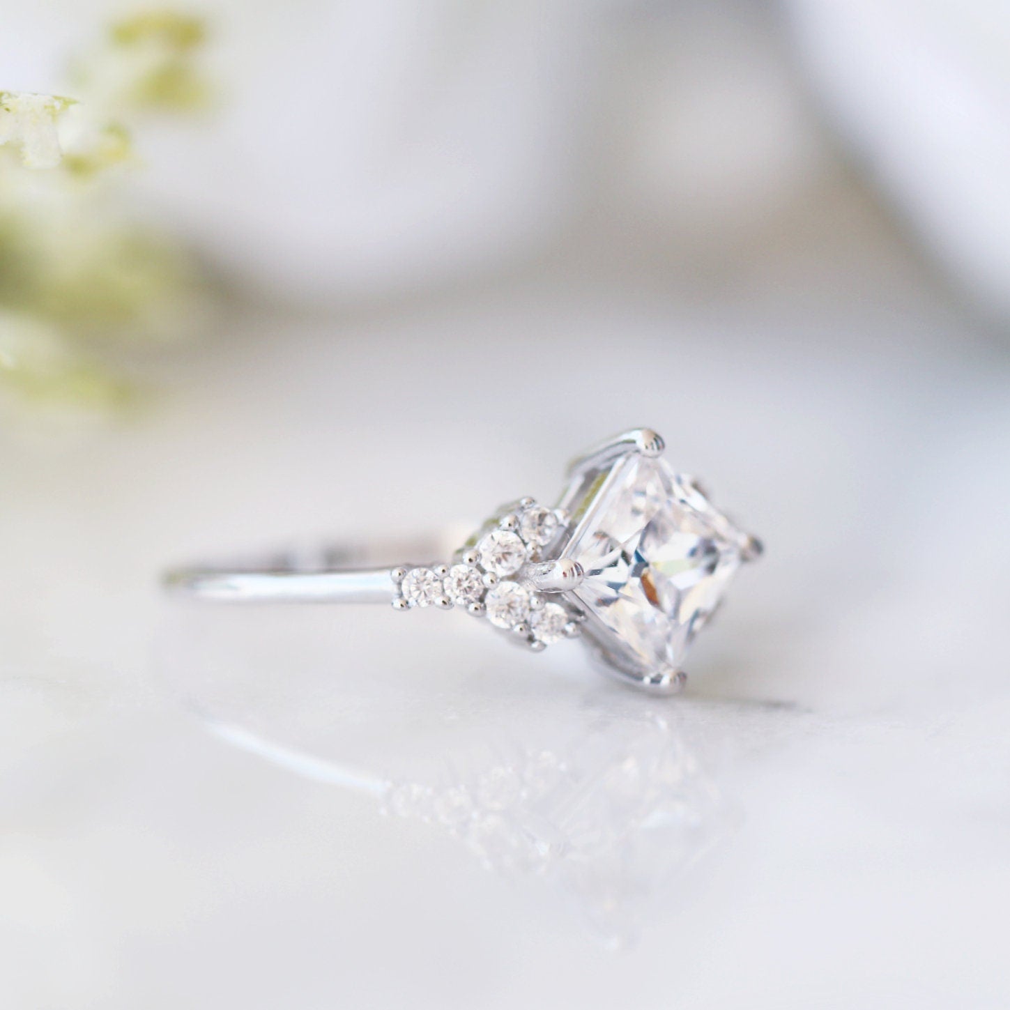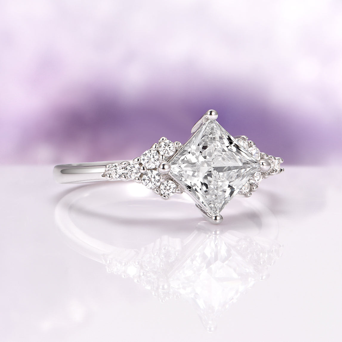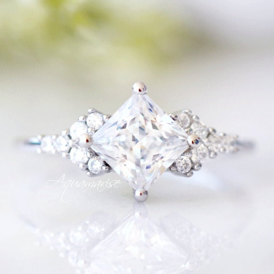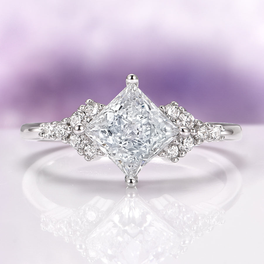Ellie Princess Cut Moissanite Engagement Ring in 14K White Gold