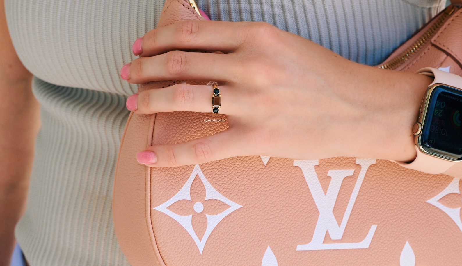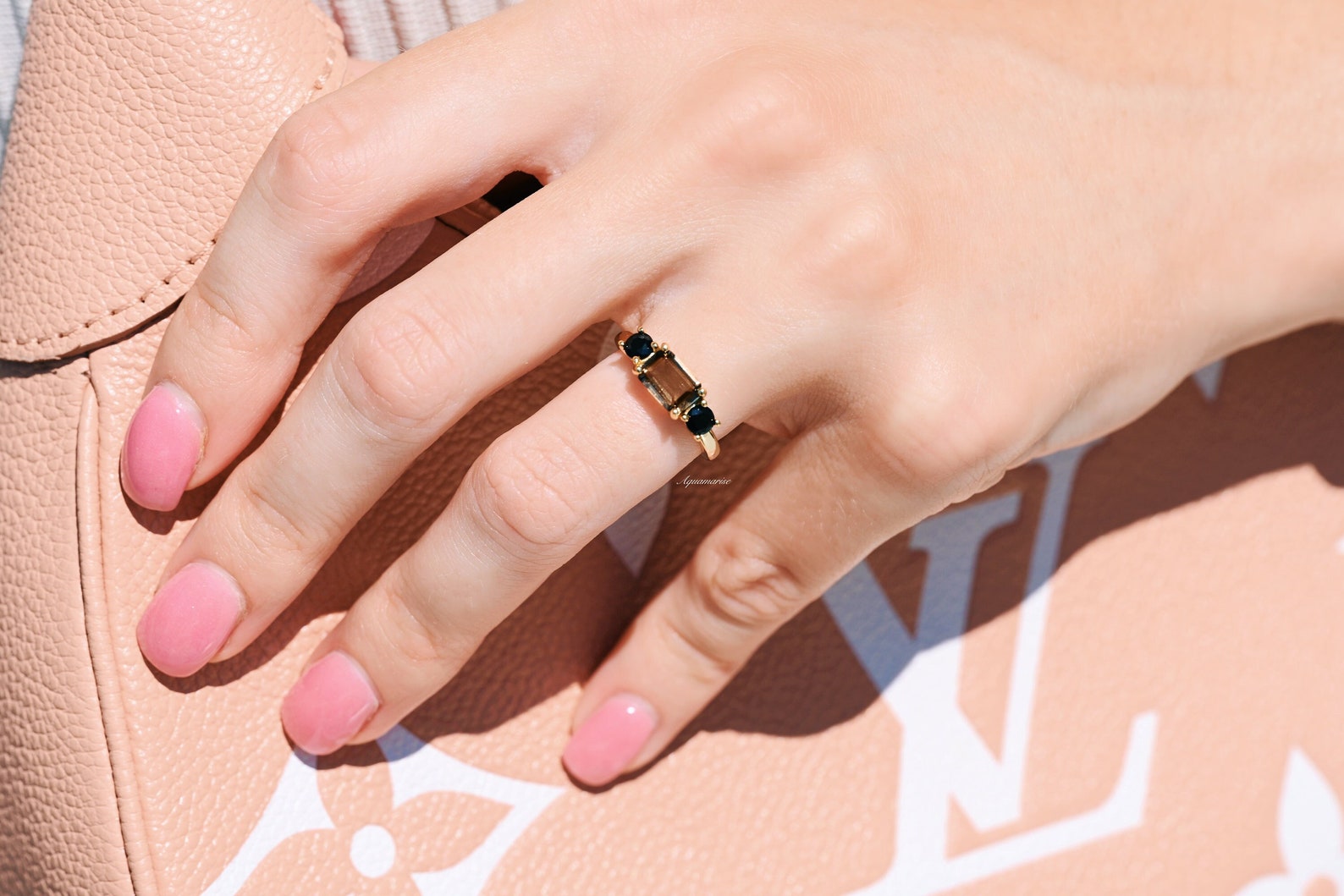 Brown Champagne Moissanite & Black Onyx Engagement Ring in 14K Solid Yellow Gold
