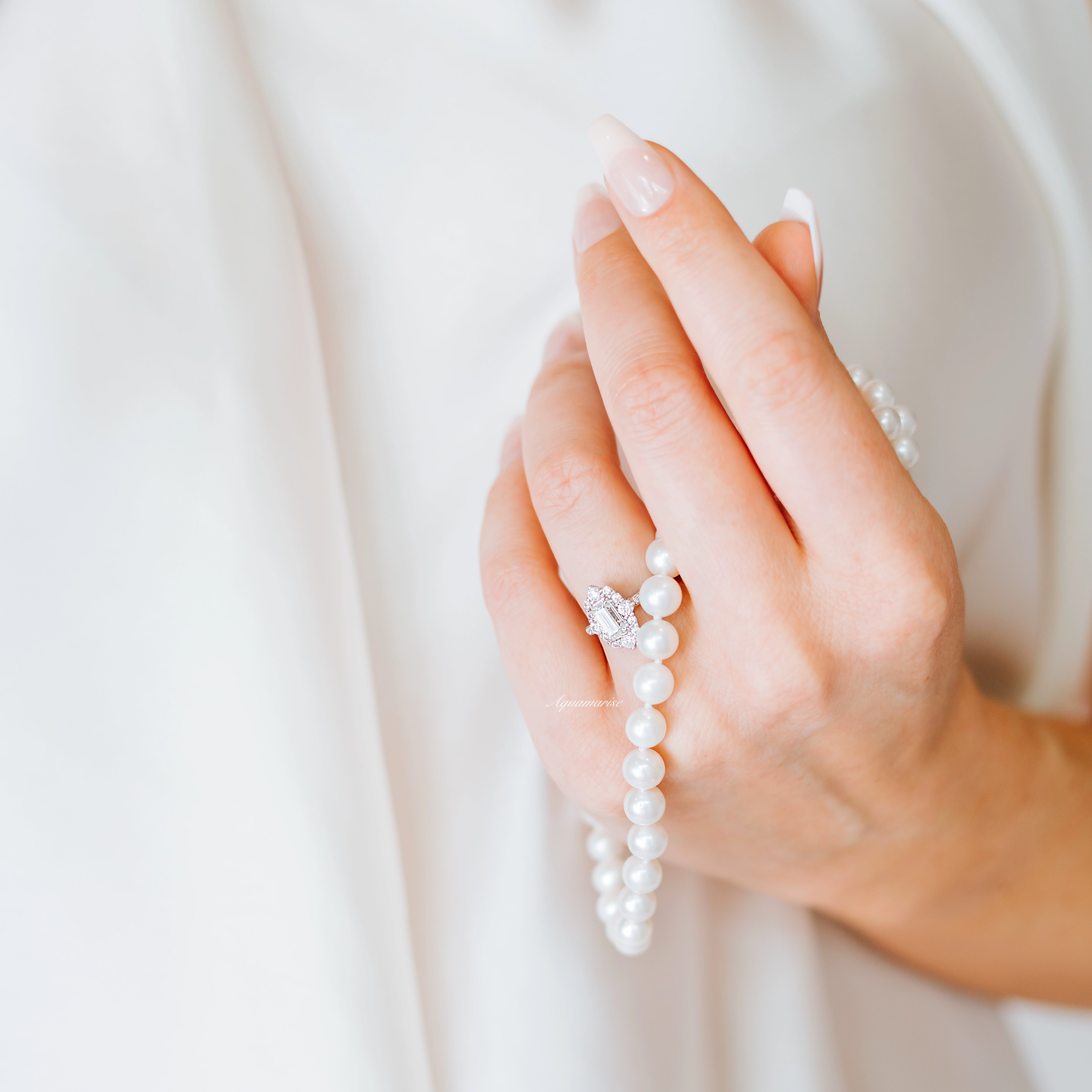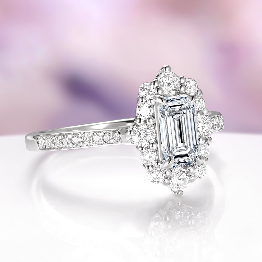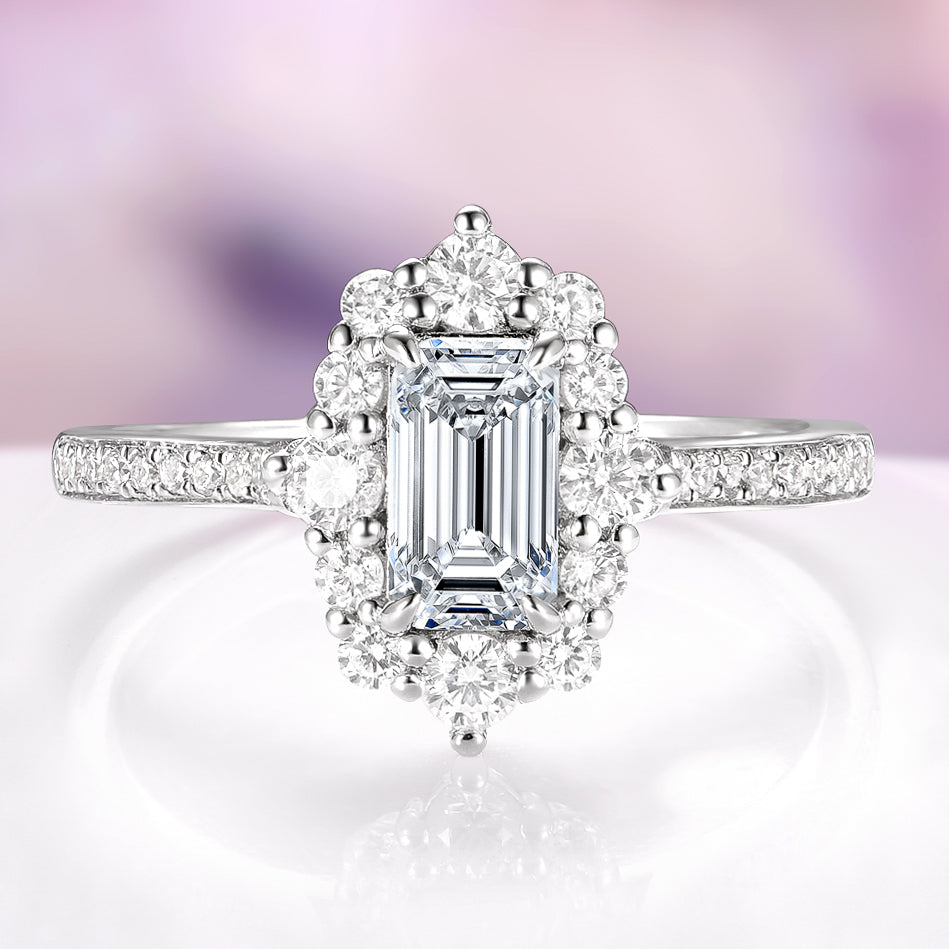 Vintage-Inspired Emerald Cut Moissanite Engagement Ring