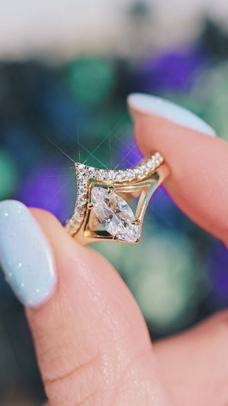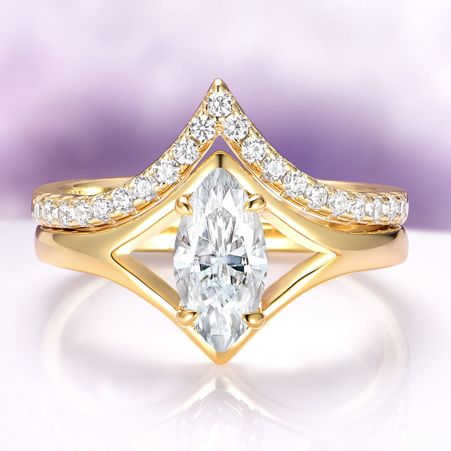 Marquise Cut Moissanite Engagement Ring Set in 14K Solid Yellow Gold
