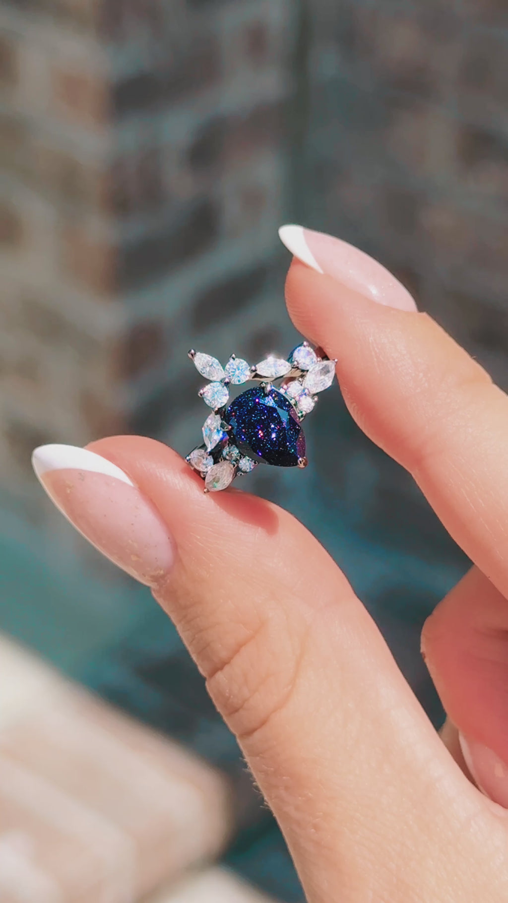 ►The delicate band adds a modern, elegant touch, making this ring set a perfect choice for those seeking a unique, non-traditional engagement ring with a cosmic flair. The Skye Starry Night set is designed for those who dream of the stars and want a ring as extraordinary as their love.