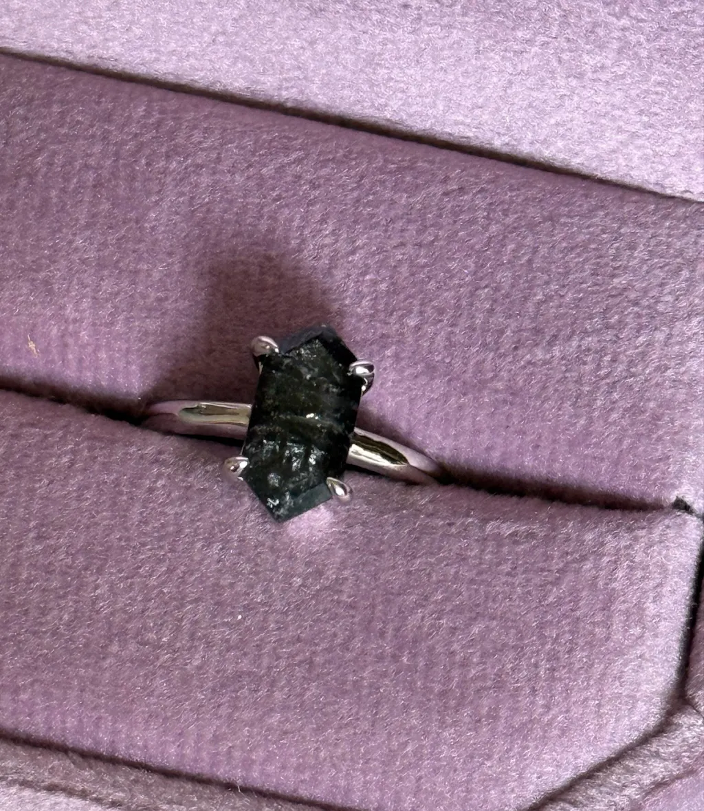Elongated Hexagon Herkimer Diamond Ring in Sterling Silver