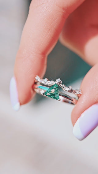 Triangle Green Moss Agate Ring for Women in Sterling Silver – a captivating blend of nature's beauty and exquisite craftsmanship. This stunning ring is designed to captivate and inspire, making it the perfect accessory for any occasion.