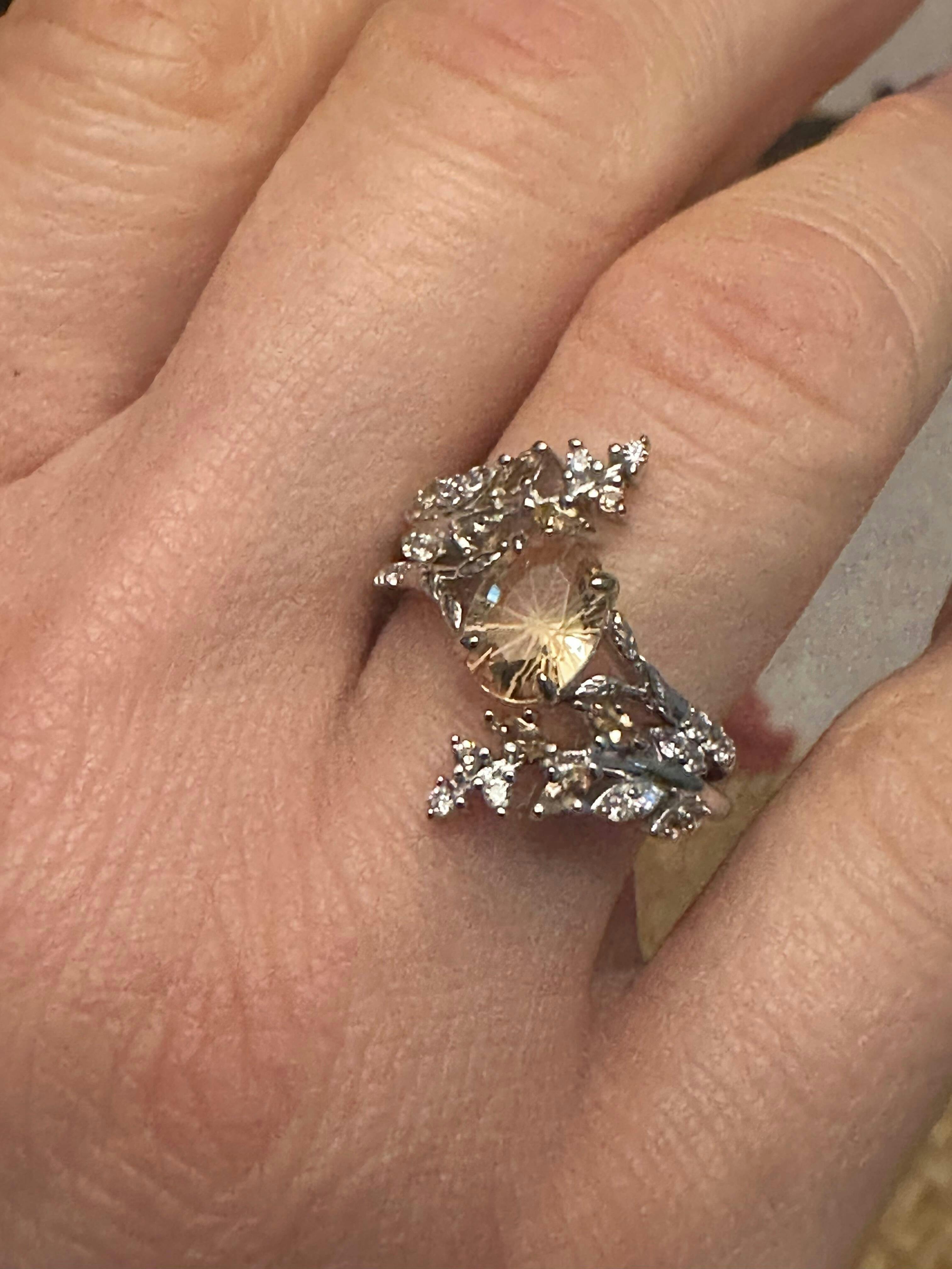 Hers is stunning silver and citrine with the leaf setting. Just incredible craftsmenship!!