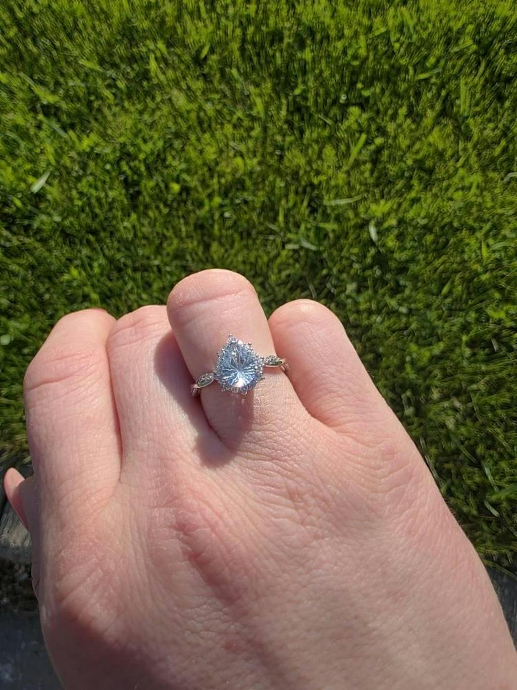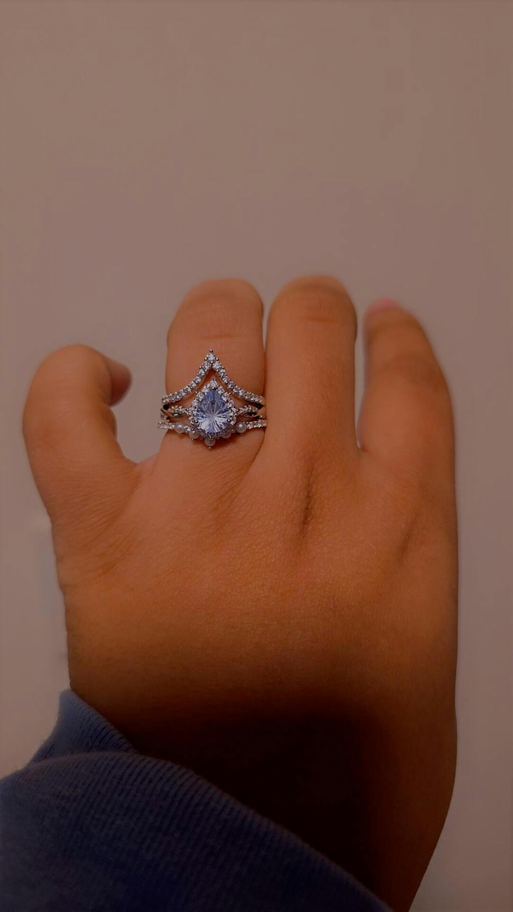 It makes the perfect wedding set for an untraditional Bride this is my anniversary set from my husband,engraved with our wedding date. I am not a diamond girlie, never really have been. Plus my birthday is in March so the aquamarine is my birth stone and the pearls are amazing, as a coastal born they make me remember my home town. My husband paired it with a gorgeous chevron stacking band to make a 3 pc set 🥰🥰 its perfection.