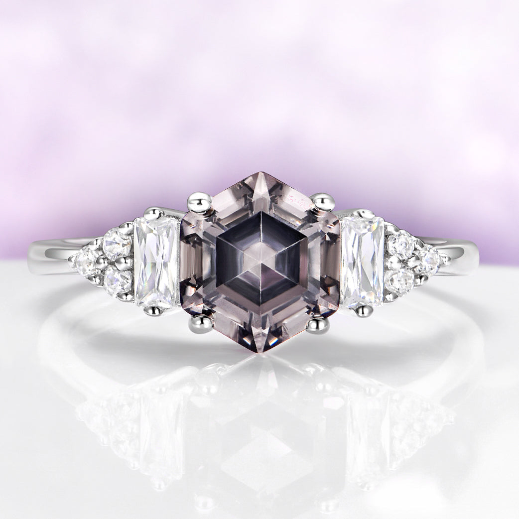 Hexagon Simulated Gray Diamond Ring in Sterling Silver