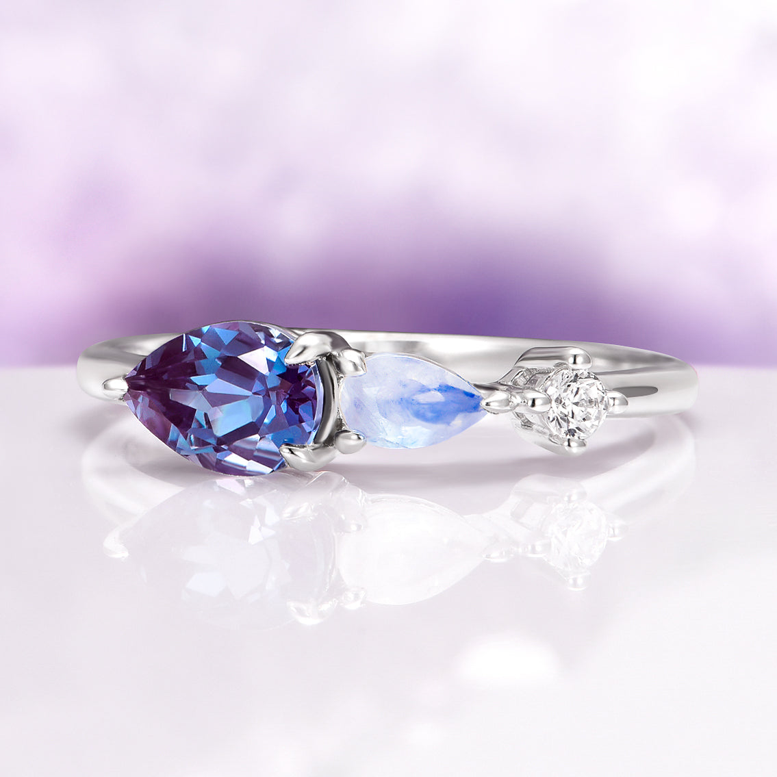 Alexandrite & Moonstone Ring in 925 sterling silver combines the allure of two enchanting gemstones with the charm of rose gold, making it a unique and meaningful piece of jewelry for women who appreciate elegance, sentimentality, and one-of-a-kind designs.