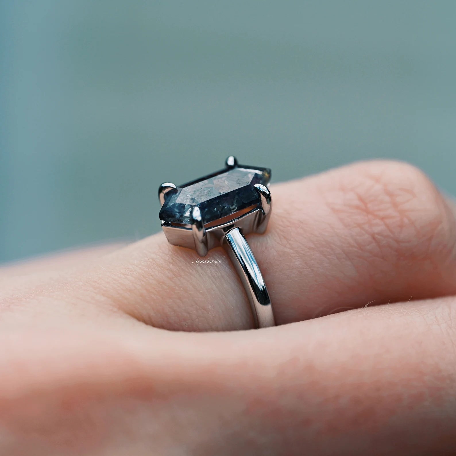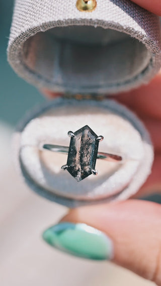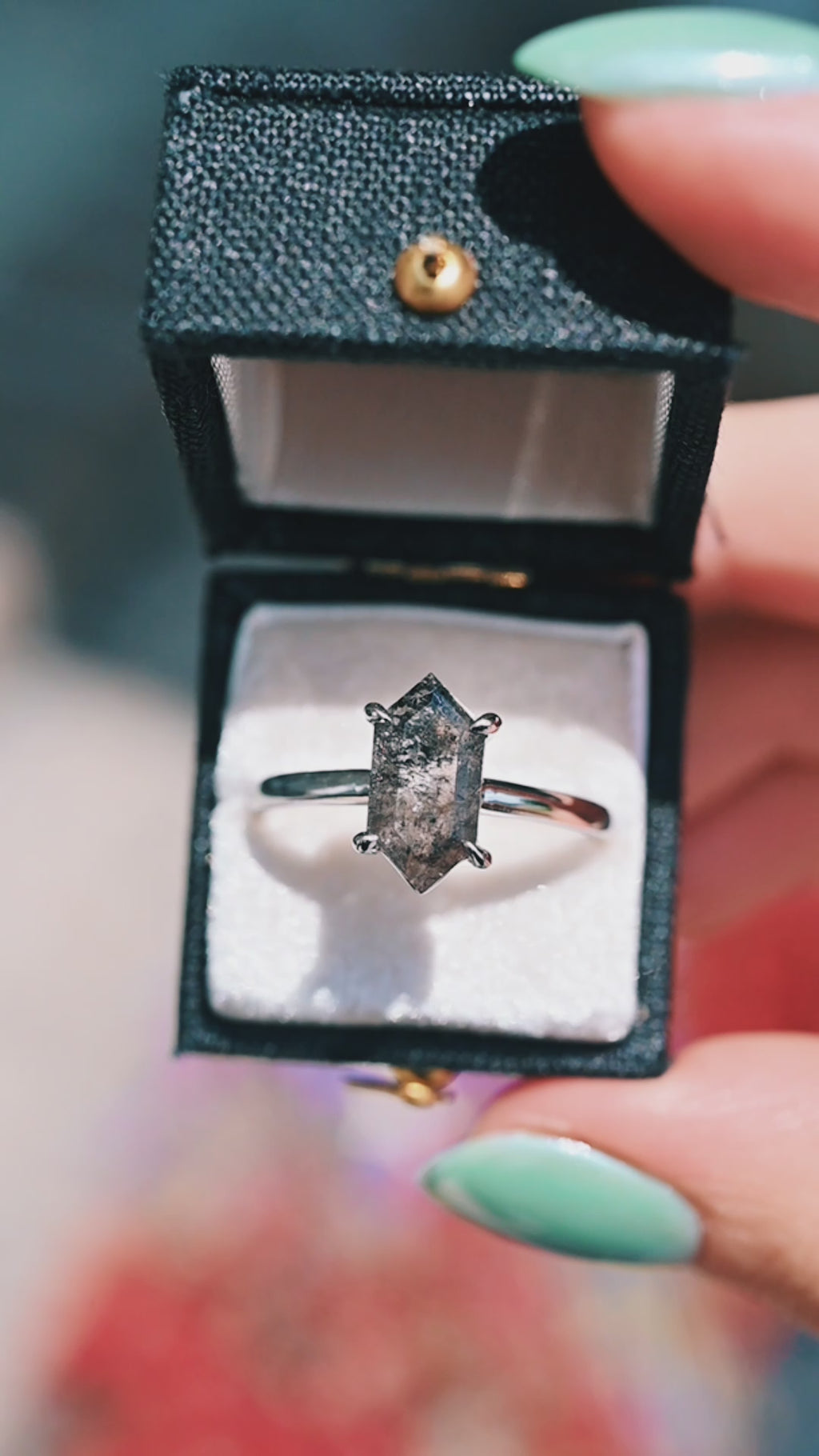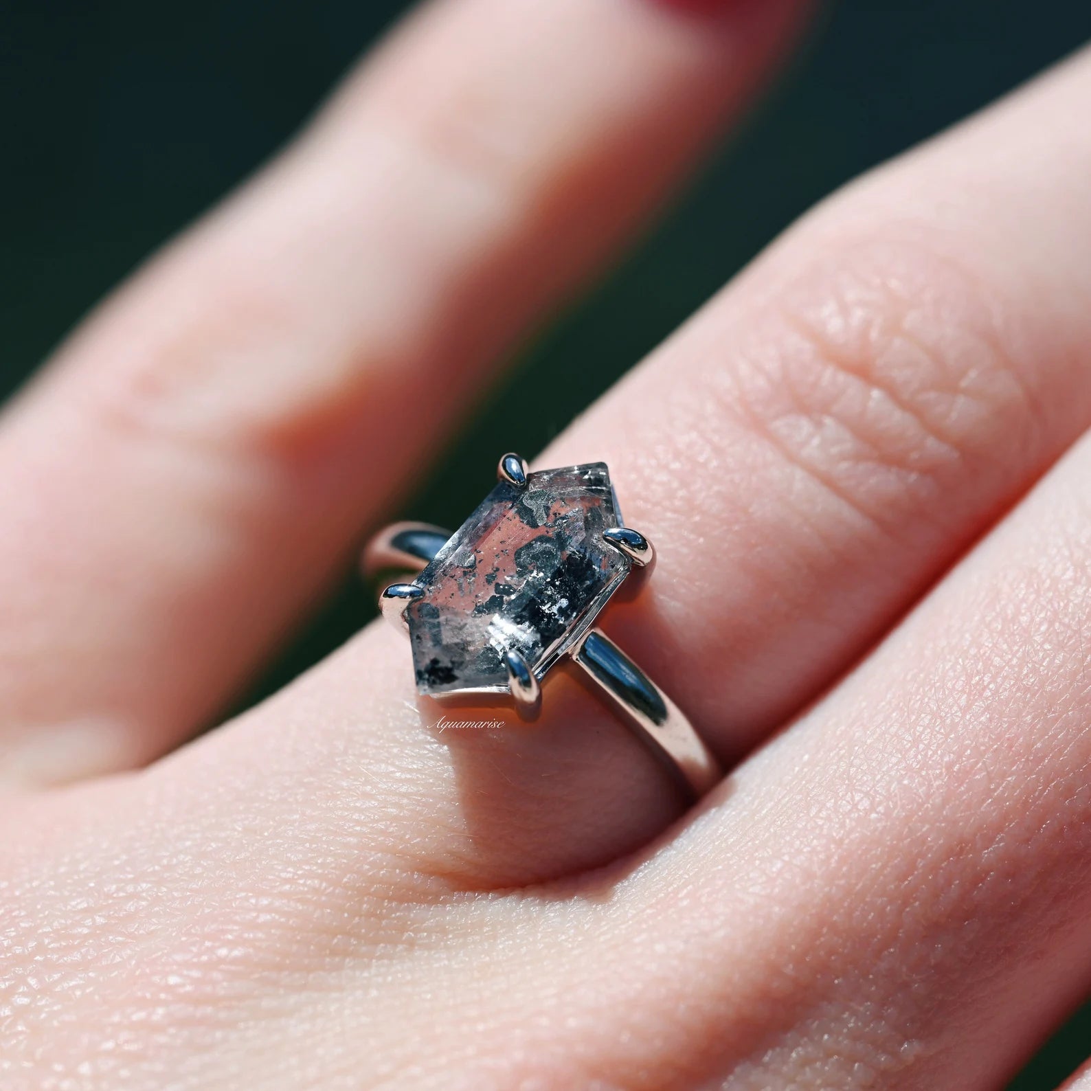 Hexagon Galaxy Raw Salt & Pepper (Herkimer) Diamond Ring- Sterling Silver