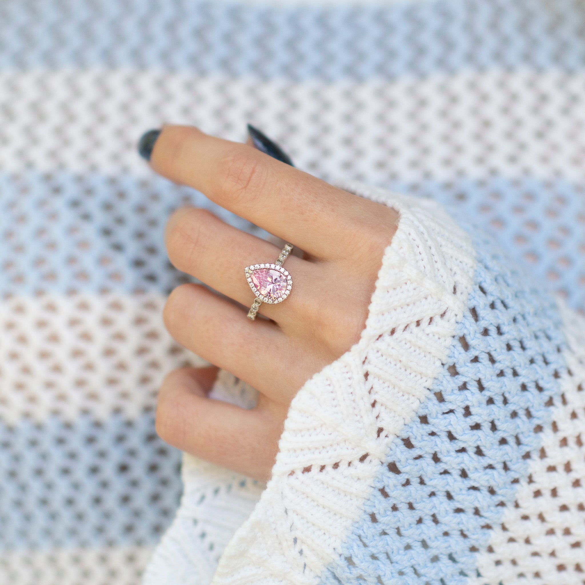 Teardrop Pink Sapphire Ring in Sterling Silver
