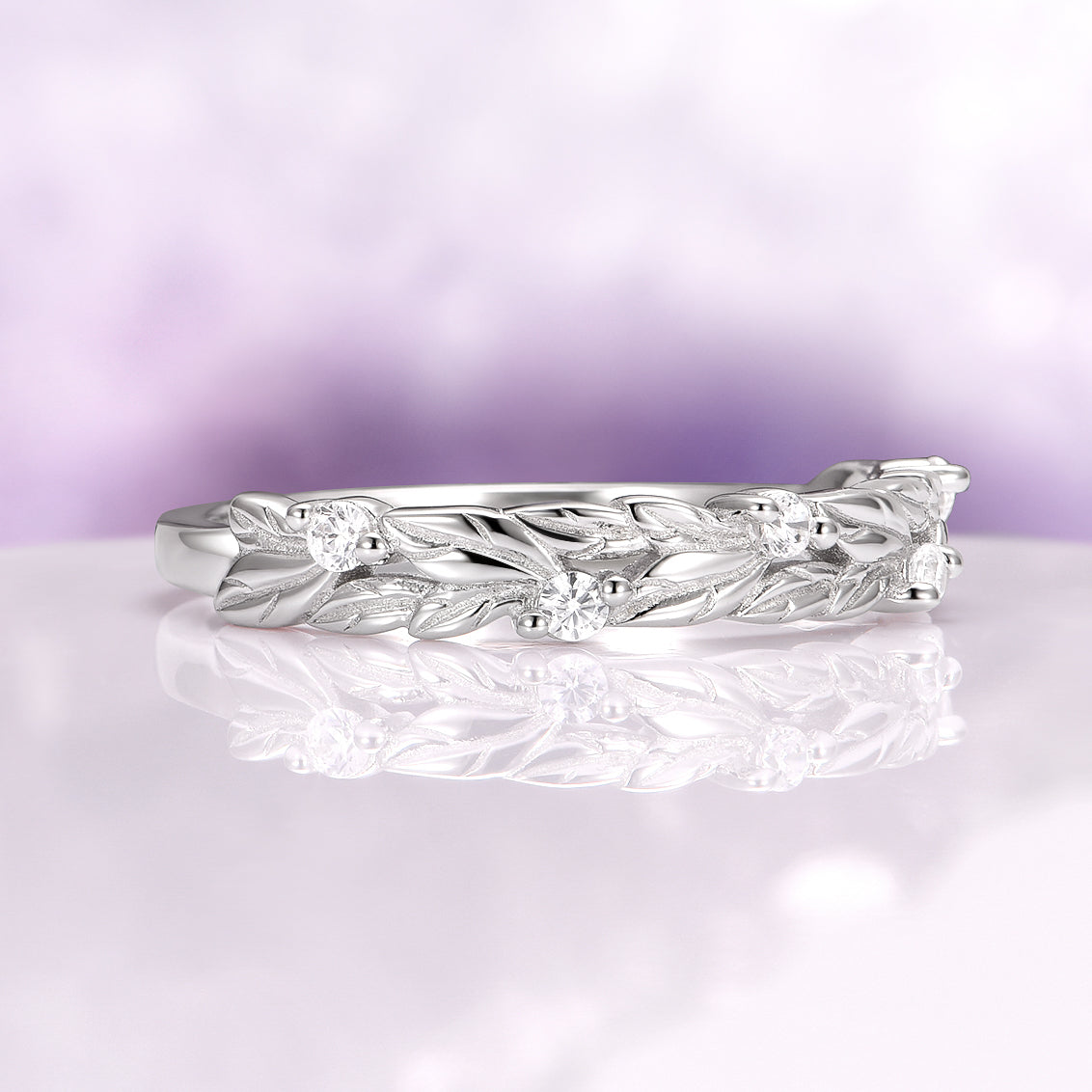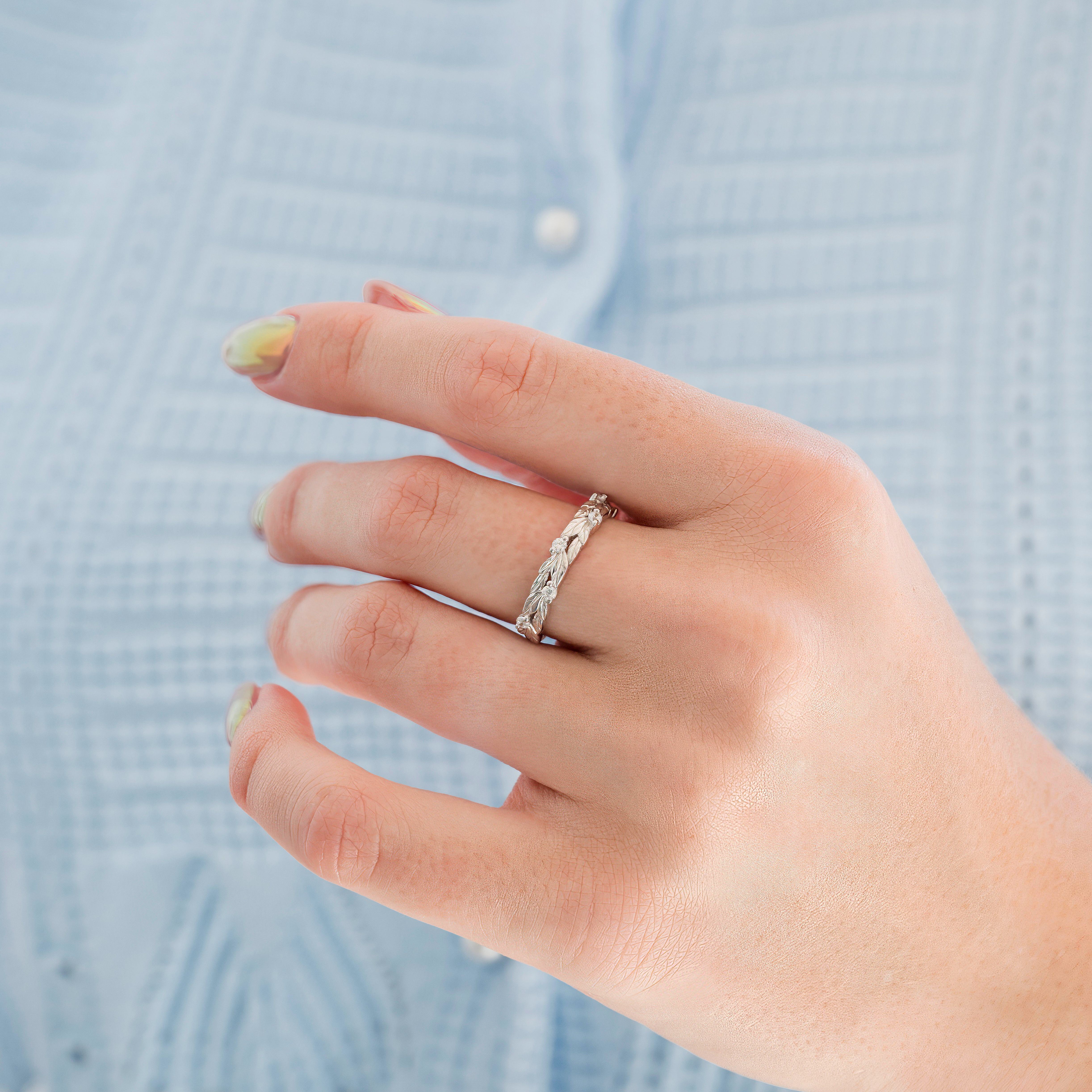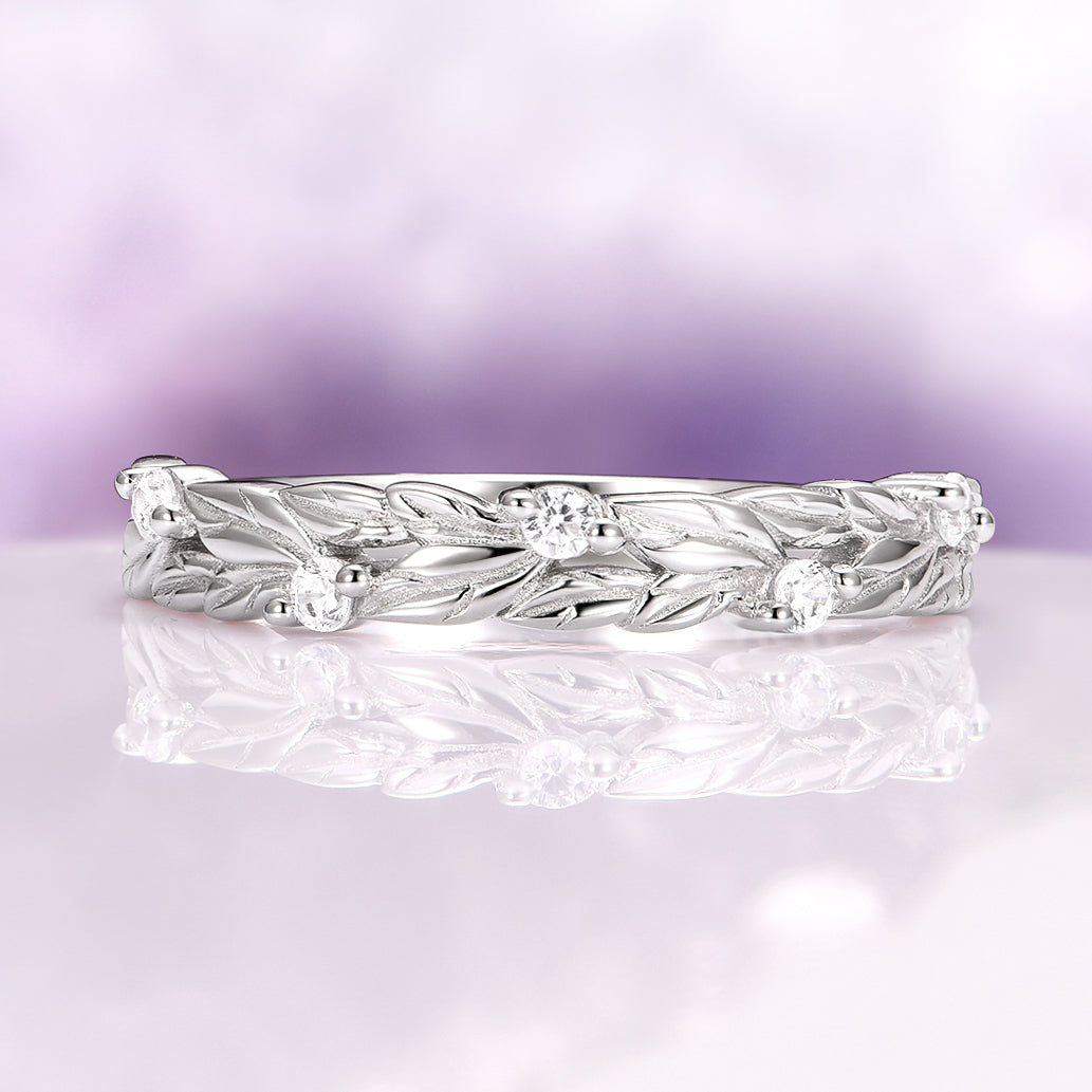 Leaf Wedding Band in Sterling Silver