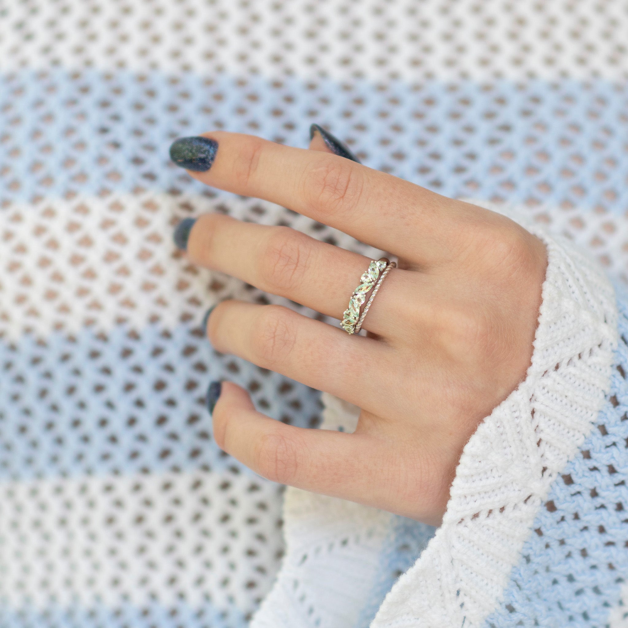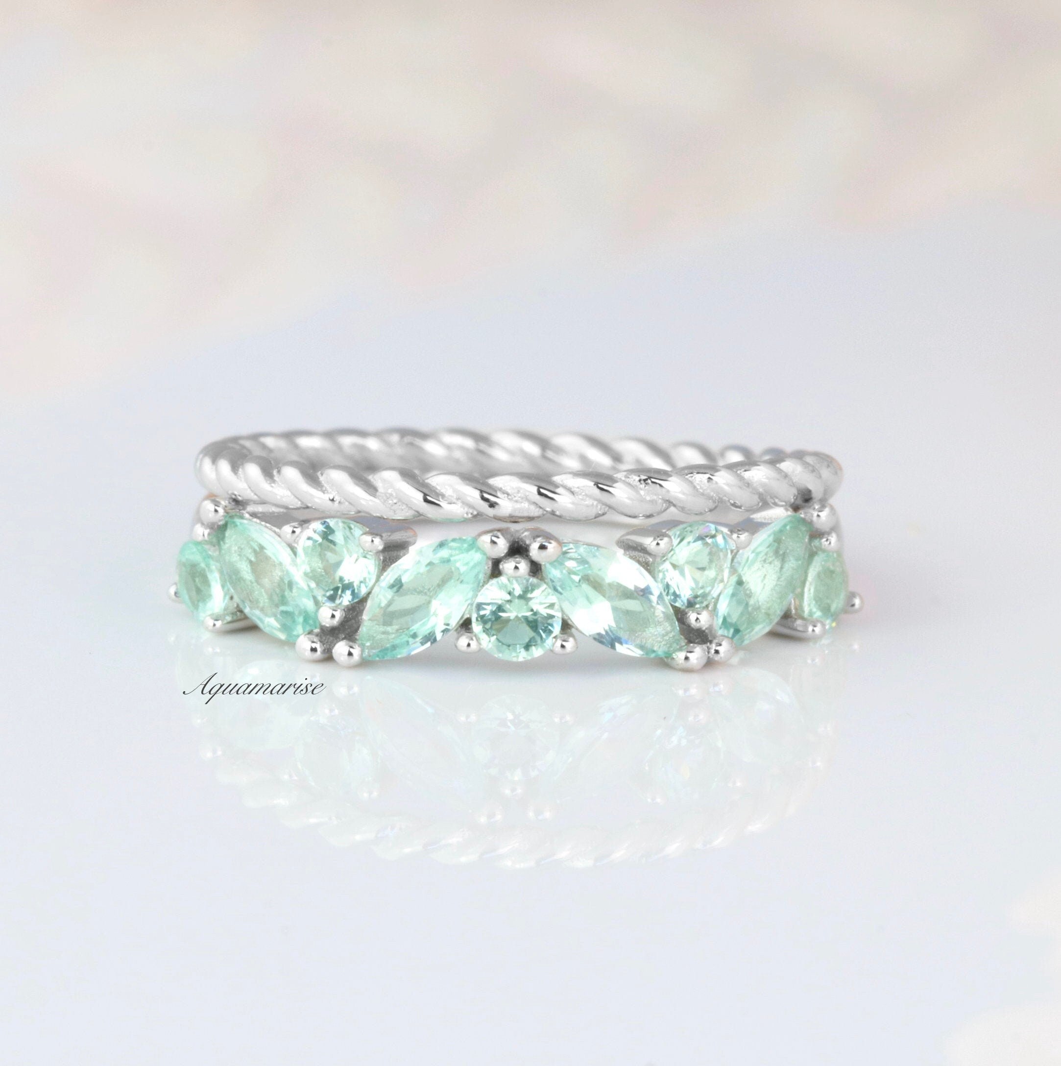 Willow Mint Green Sapphire Ring Set- Sterling Silver