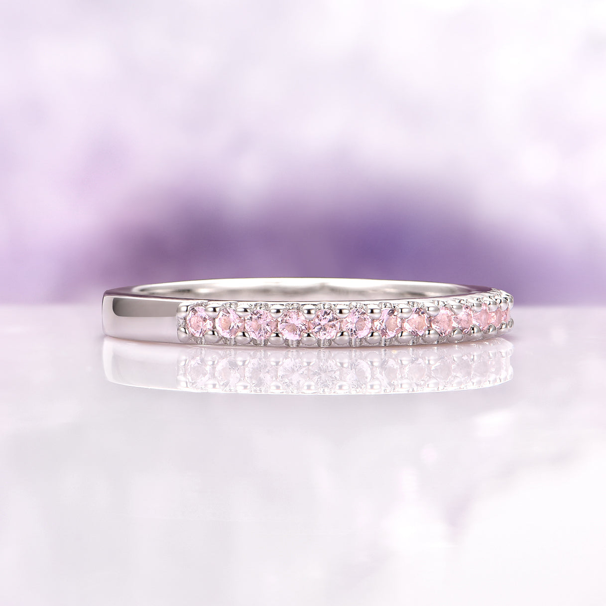 Minimalist Blush Pink Morganite Wedding Band in Sterling Silver (2mm)