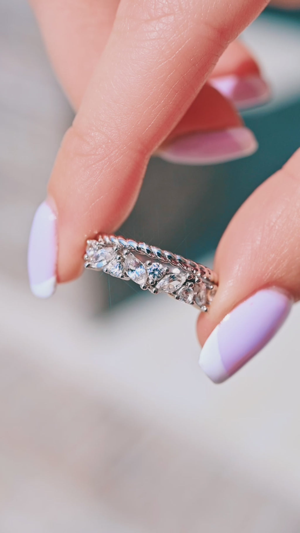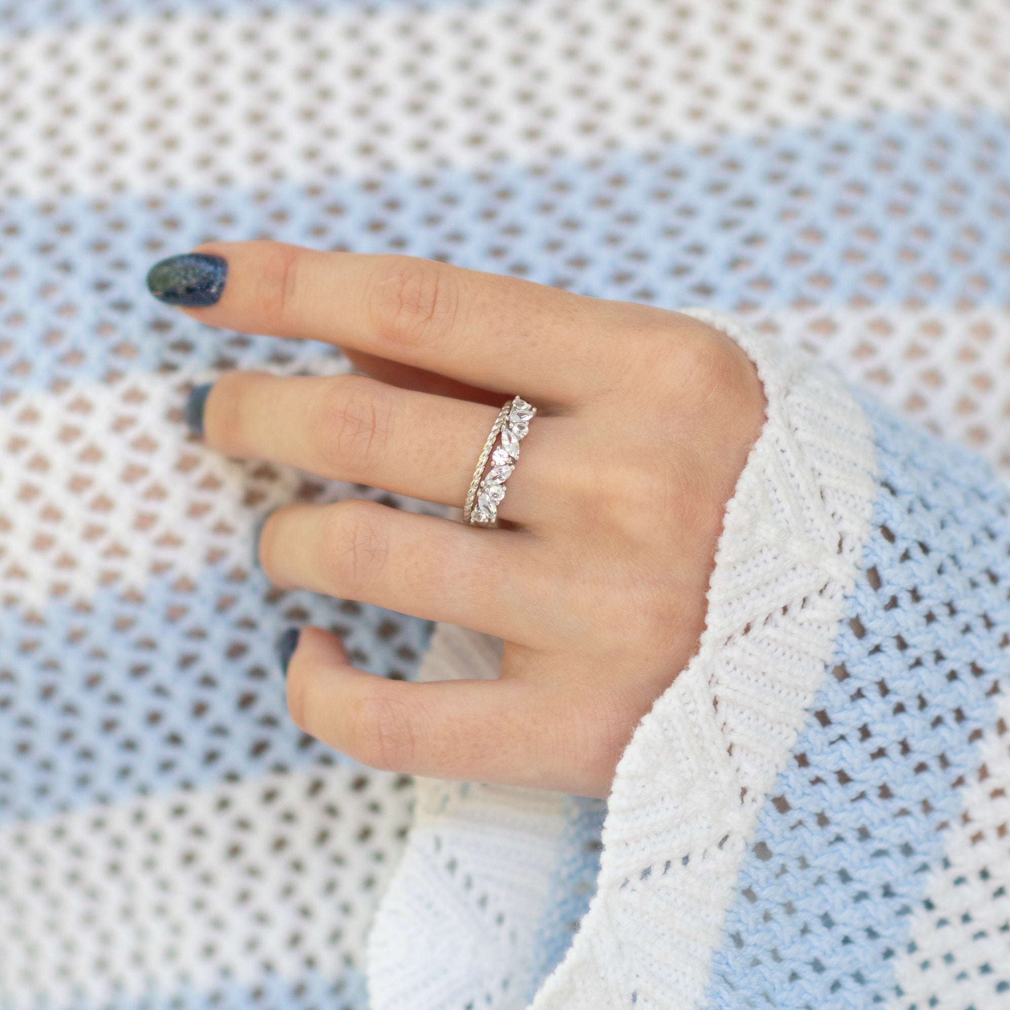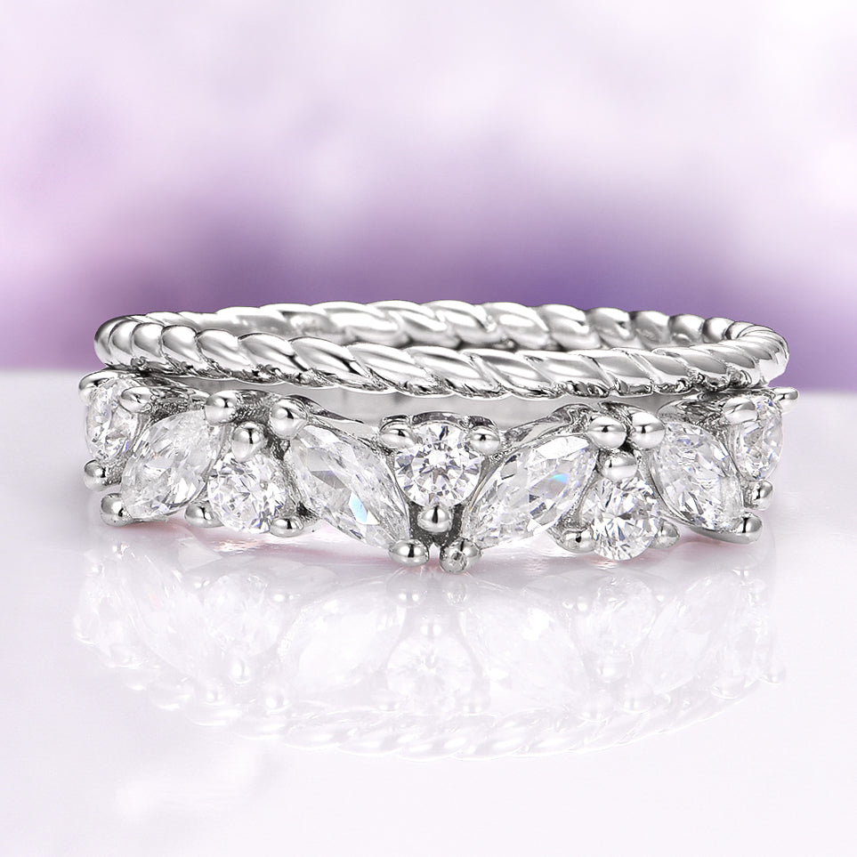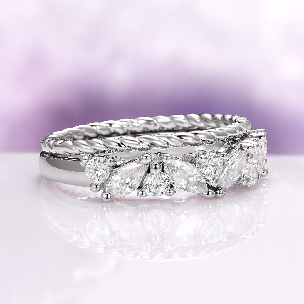 Willow White Sapphire Wedding Ring Set in Sterling Silver