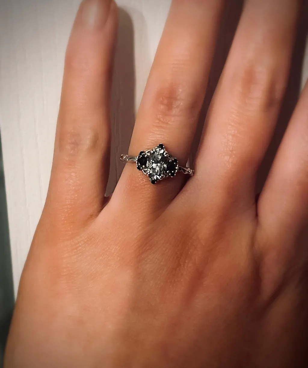 It’s truly beautiful and so unique, my partner and I plan to have a Halloween wedding and we feel in love with this ring it’s perfect!!