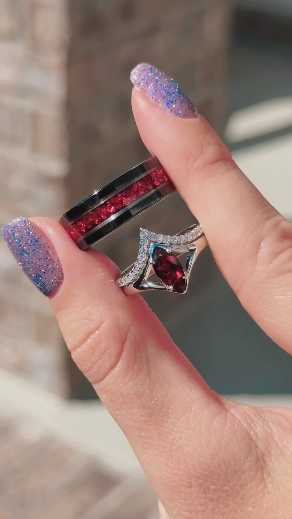 Crushed Red Garnet Wedding Band - 8MM Black Tungsten