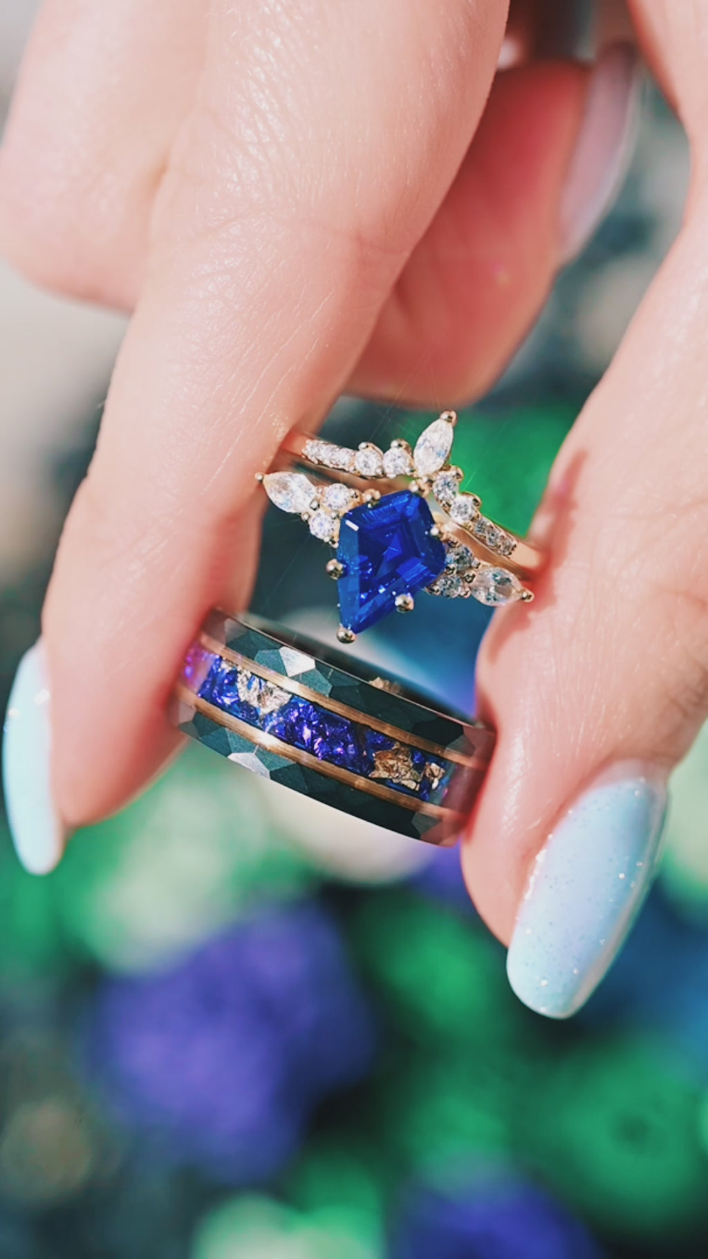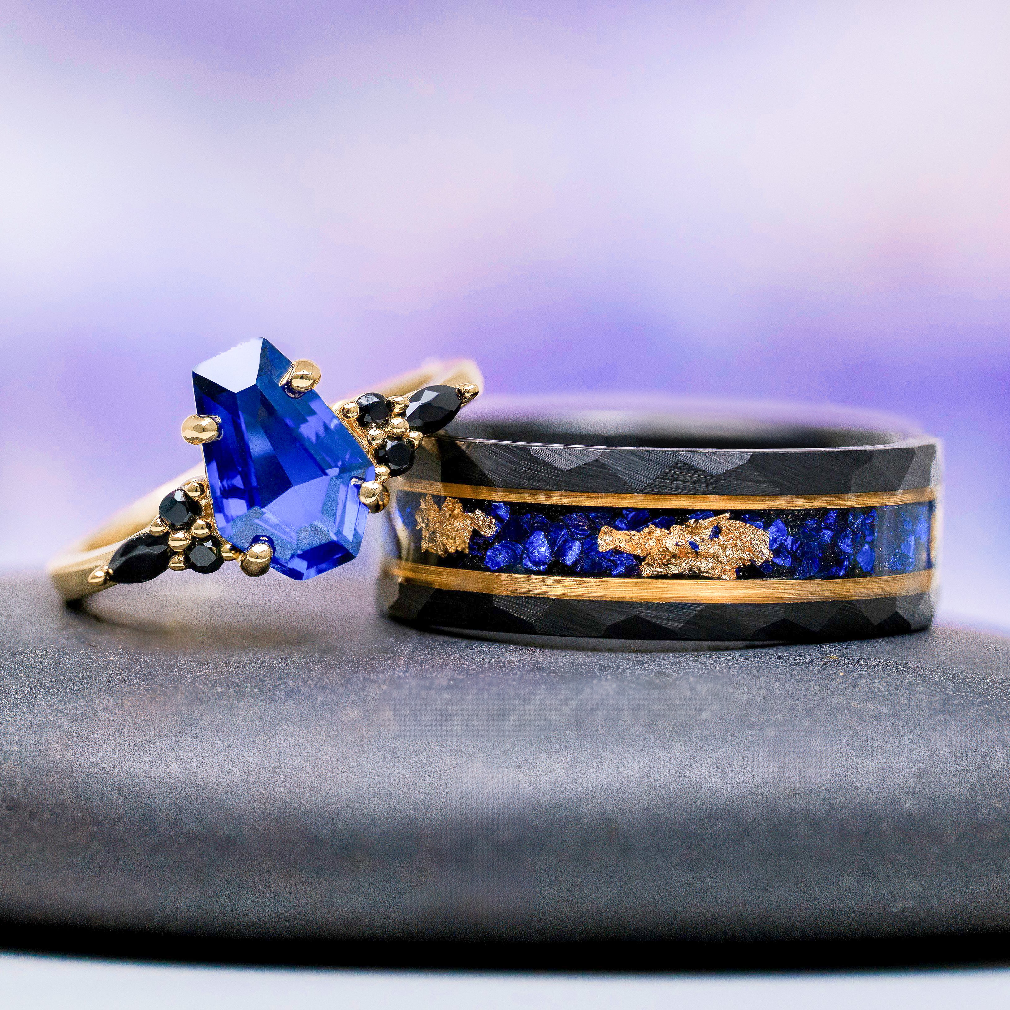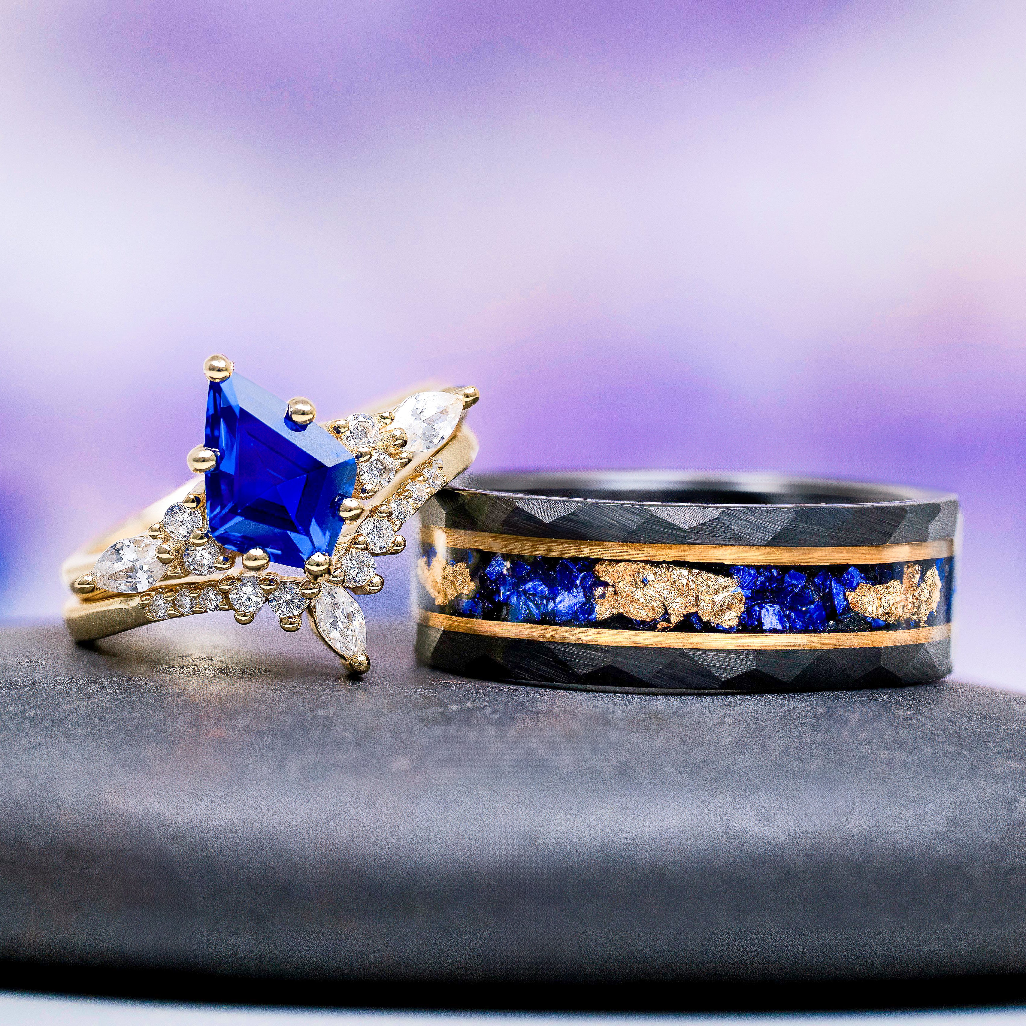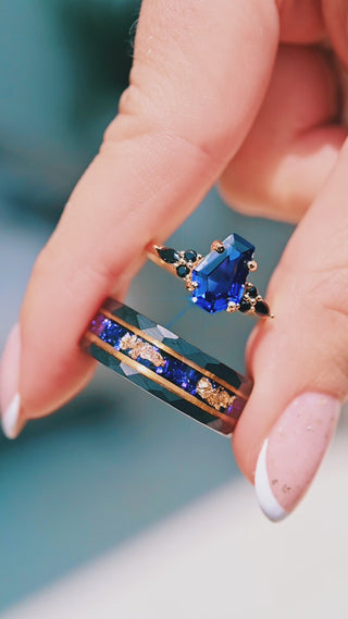 Got the crushed sapphire and gold leaf ring for my partner who loves it!