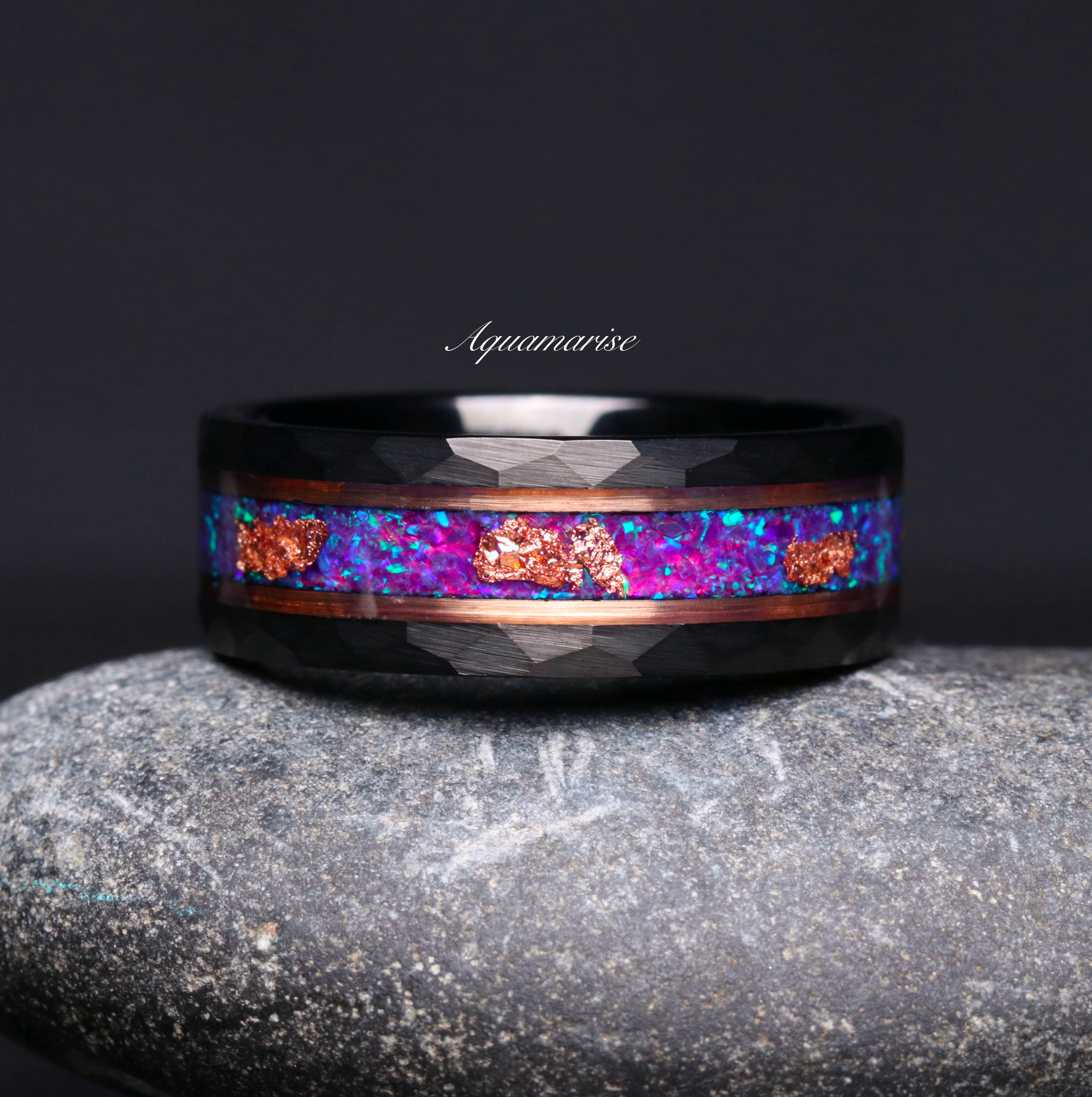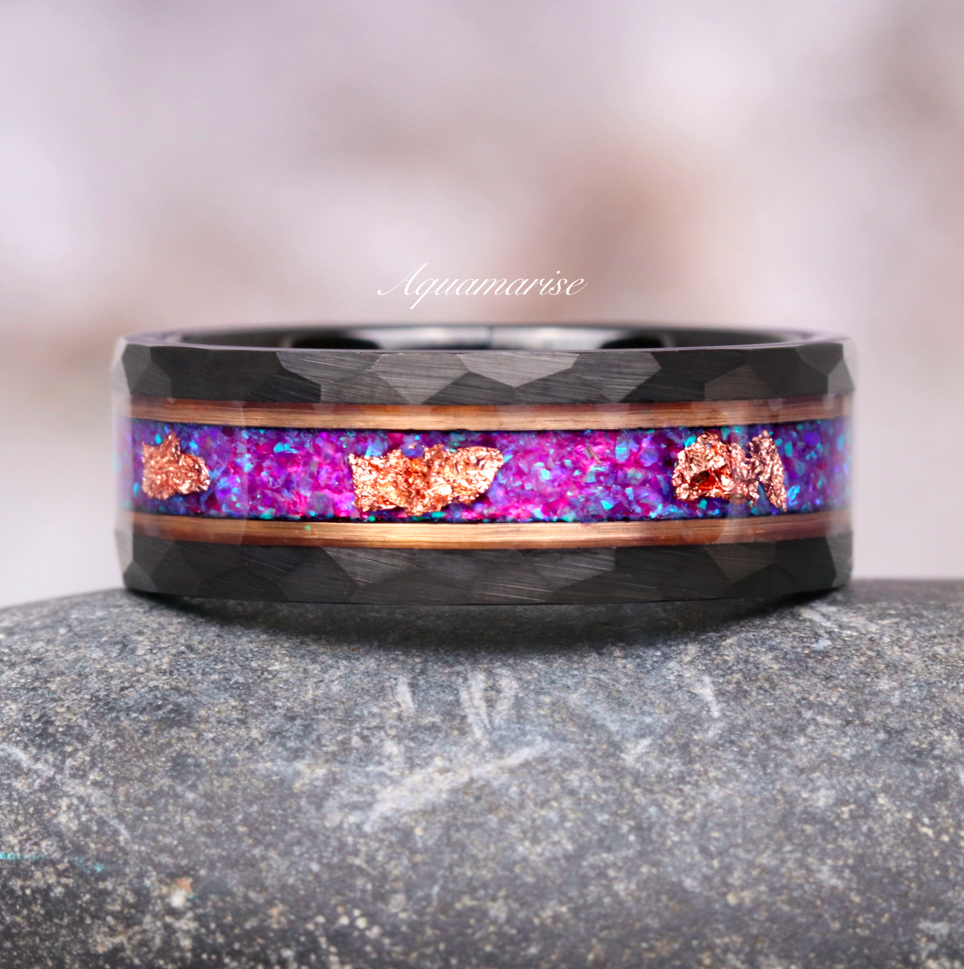 ►Material: Tungsten Carbide, Purple Fire Opal, and Rose Gold Leaf Foil.