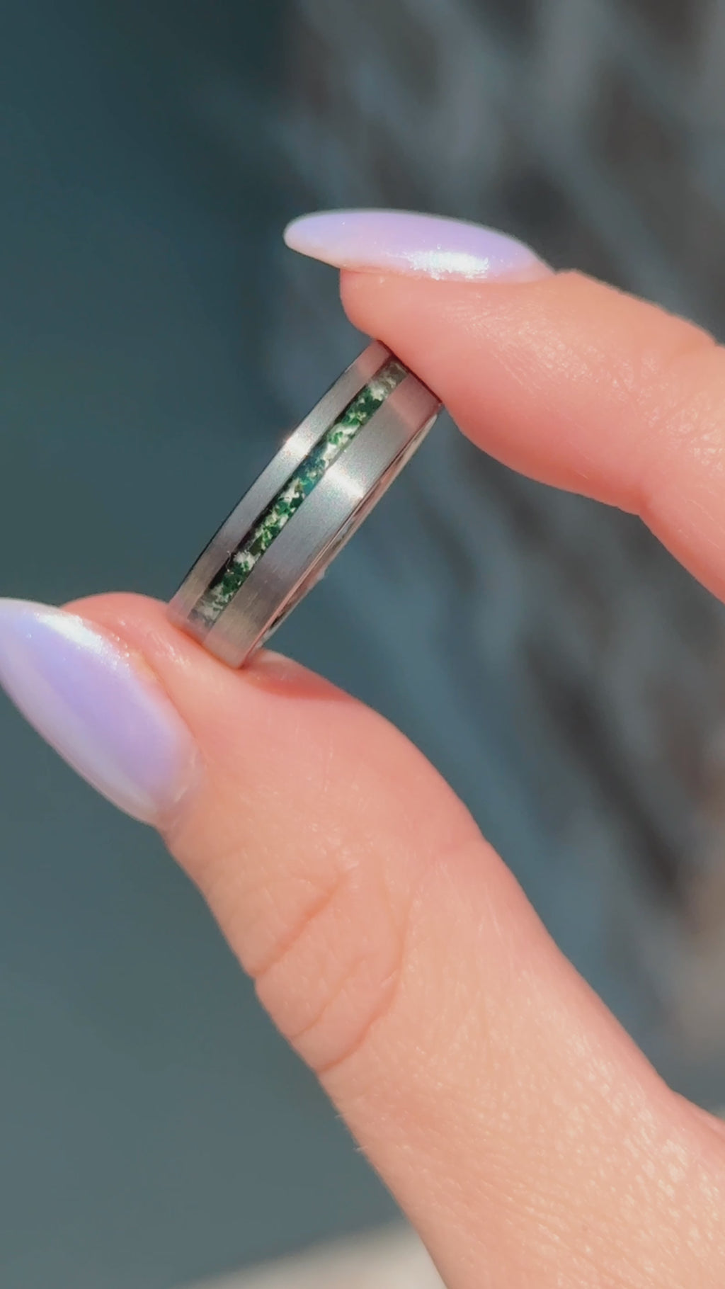 Green Moss Agate Wedding Band- 6MM Tungsten