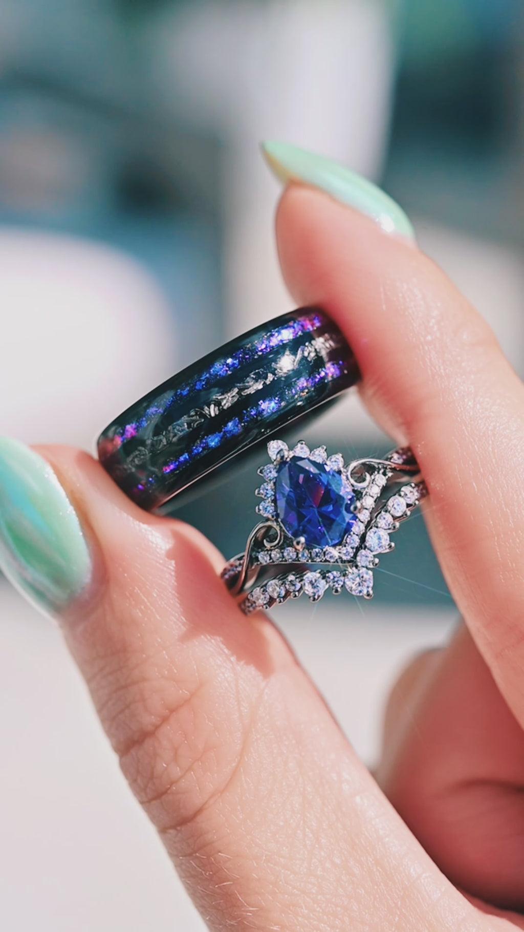 Orion Nebula™ & Meteorite Wedding Band- 8MM Black Tungsten