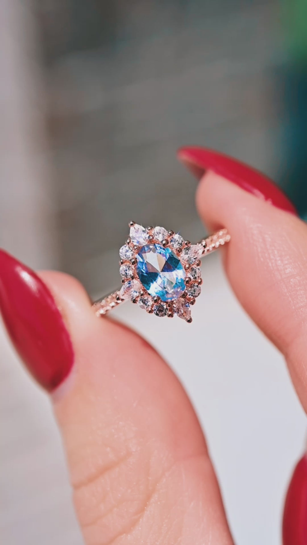 Introducing the Astra North Star Aquamarine Engagement Ring, a vintage-inspired design that captures grace, romance, and timeless elegance. Handcrafted in solid 14K rose gold, this enchanting ring features a serene oval-cut natural aquamarine. Known as the stone of courage and tranquility, aquamarine’s delicate blue glow symbolizes clarity and everlasting devotion. A star-inspired arrangement of sparkling accent stones — your choice of moissanite or natural diamonds — enhances the ring’s celestial charm. Paired with its refined rose gold band, this piece is a luminous heirloom created to honor love’s guiding light.