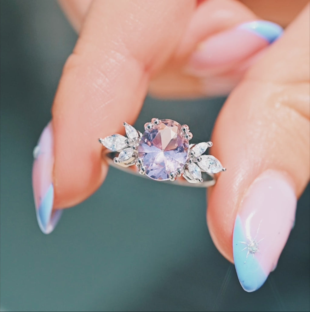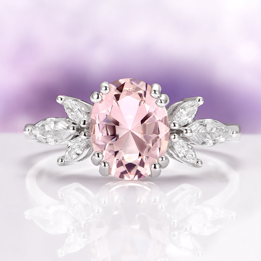 The Eva Morganite Ring in 14k White Gold is a vintage-inspired treasure, designed for those who love timeless elegance with a touch of romantic warmth. At the heart of this ring lies a natural morganite, celebrated for its delicate peach-pink hue and enchanting brilliance. Its captivating center stone is beautifully framed by sparkling accent stones, choose between moissanite for exceptional fire or natural diamonds for an heirloom-worthy finish. Crafted in solid 14k white gold, this design evokes a romantic vintage aesthetic with intricate detailing that enhances the soft, feminine beauty of morganite.