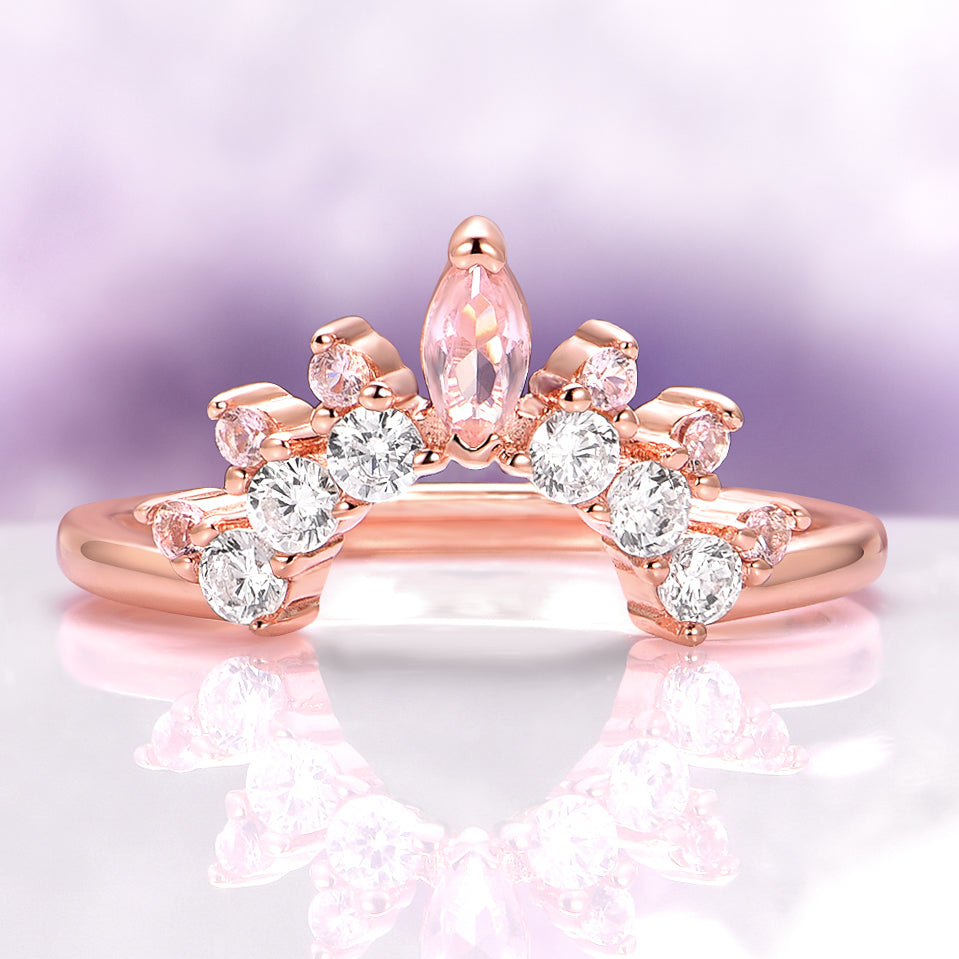 Blush Pink Morganite Stackable Wedding Band in 14K Solid Rose Gold