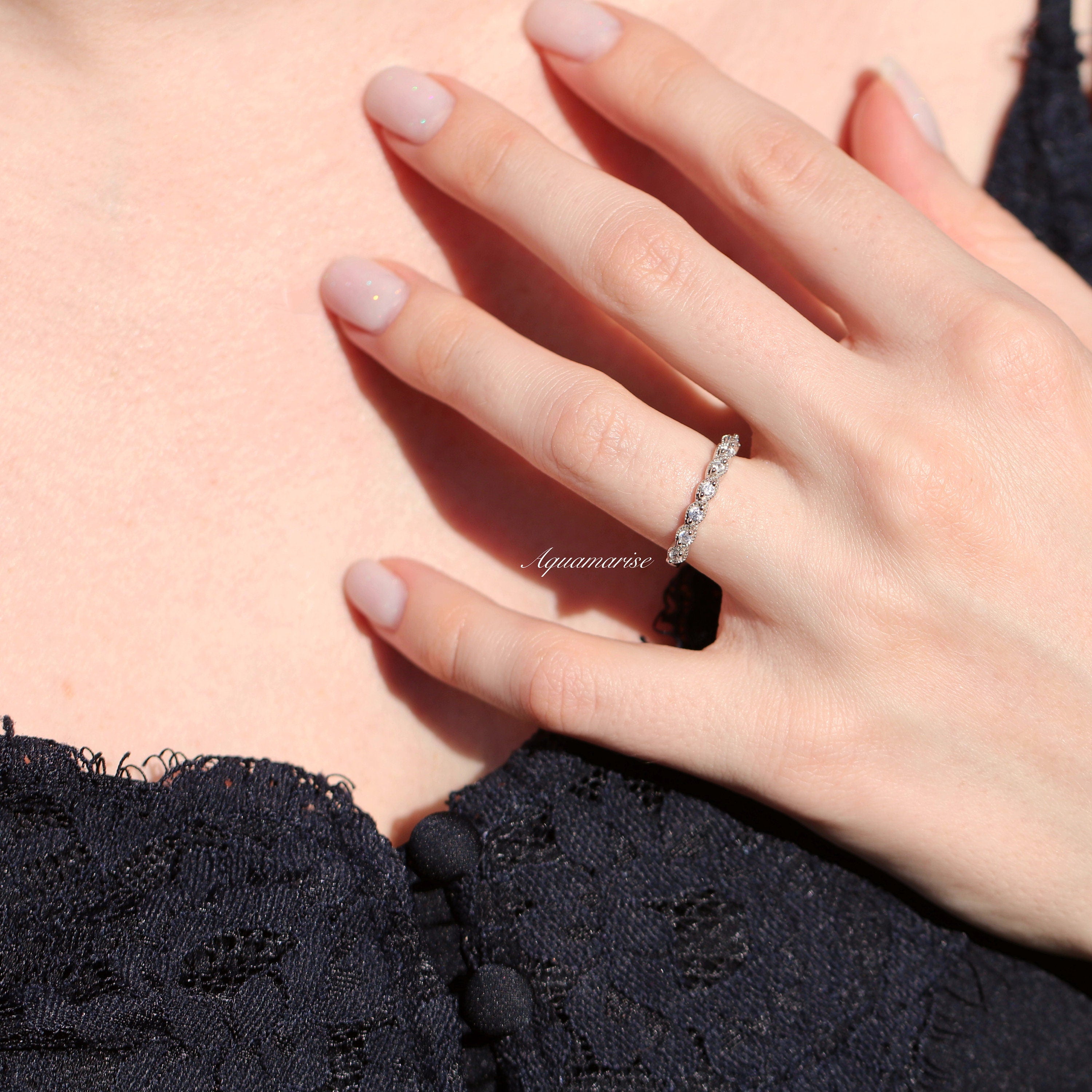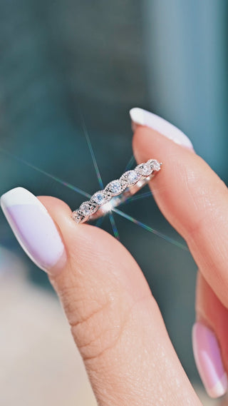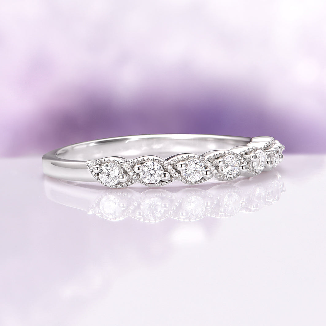 Elevate your love story with this vintage-inspired white sapphire wedding band, crafted in solid 925 sterling silver with a rhodium finish for lasting brilliance and shine. Perfect as a wedding ring, anniversary band, promise ring, or gift for her, this timeless piece blends elegance with durability, making it a cherished symbol of commitment.