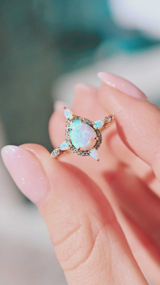 Blue Fire Opal Engagement Ring in 14K Yellow Gold Vermeil