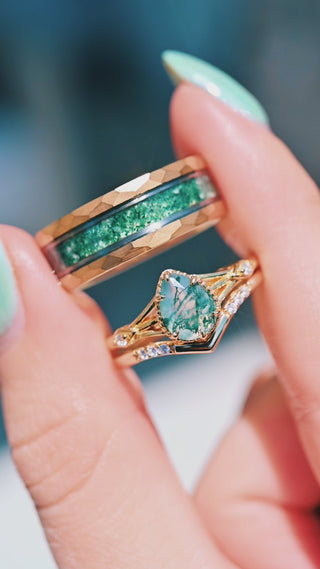 The ring is beautiful, and the seller was super helpful with getting me the correct ring size after I guessed my fiancé’s size wrong
