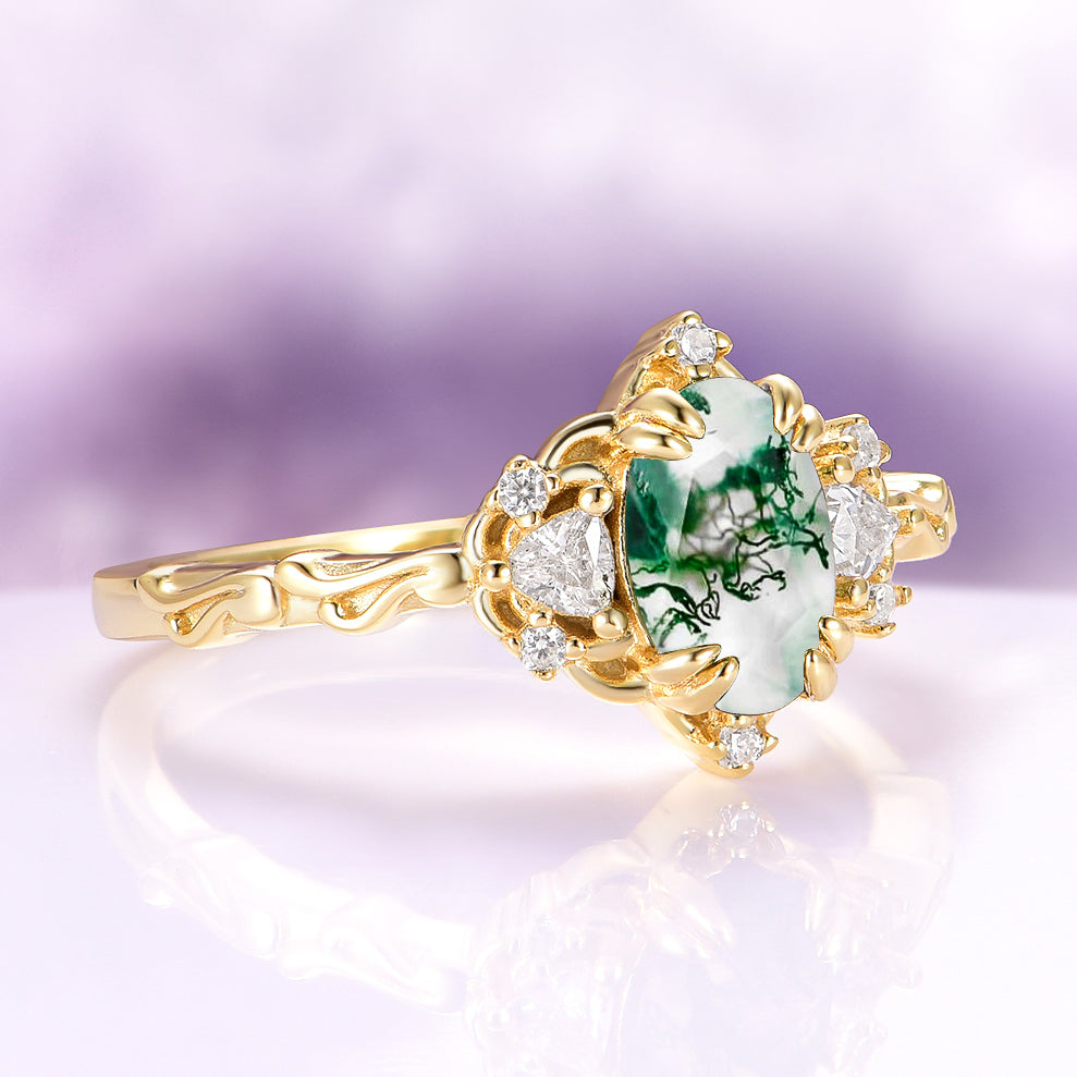 Esme Green Moss Agate Fairy Engagement Ring in 14K Yellow Gold Vermeil