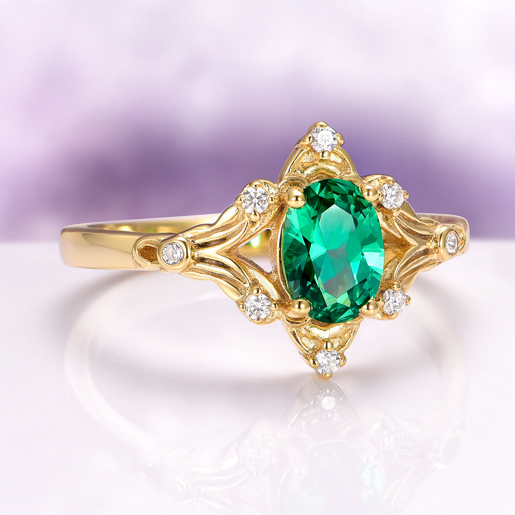 Maeve Vintage Emerald Ring in 14K Yellow Gold Vermeil