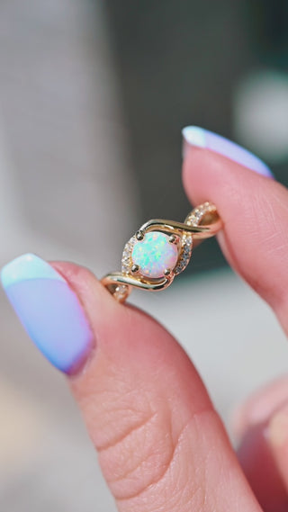 Perfect as a statement piece, promise ring, or nature-inspired engagement ring, this opal ring radiates vintage charm and modern elegance.