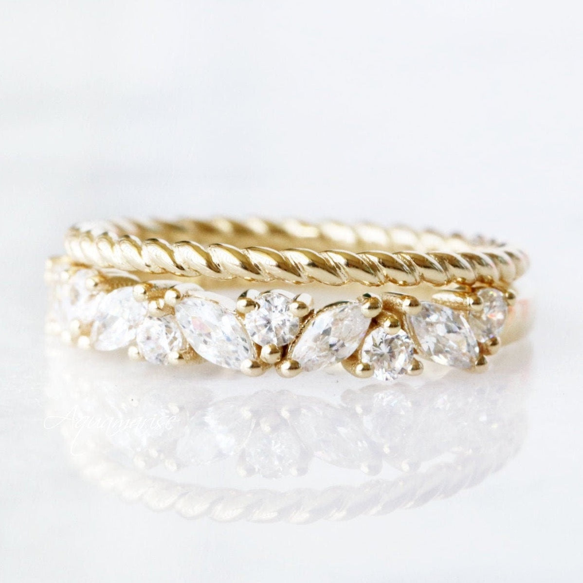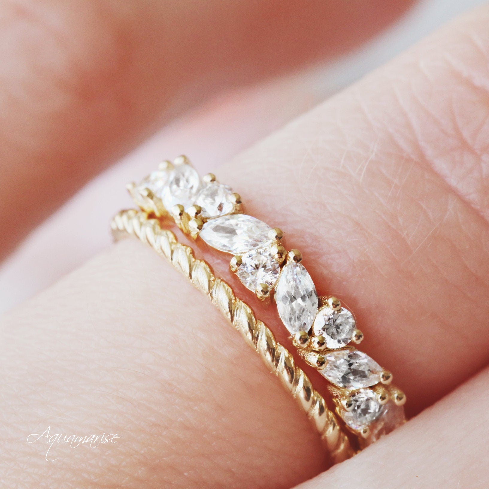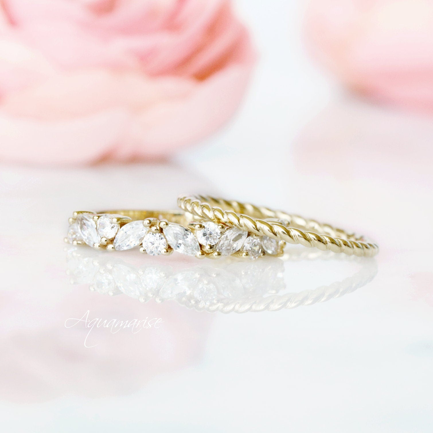 ►Available in 10K, 14K, 18k solid yellow gold, depending on your selection. This ring set can be also custom made in white or rose gold.