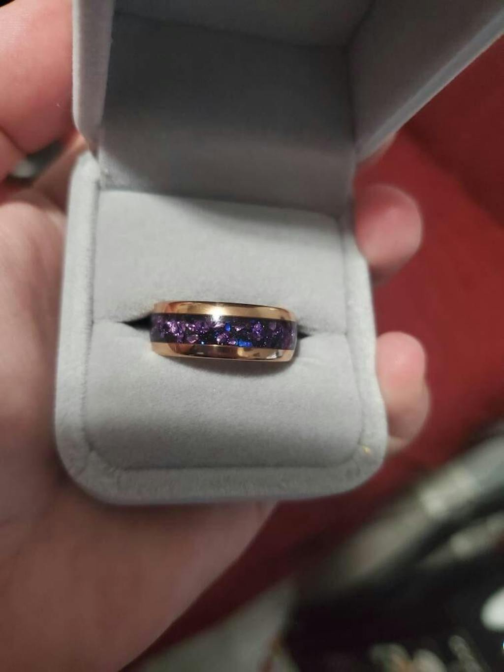 ►Material: Tungsten Carbide, Rose Gold, Crushed Amethyst and Sandstone