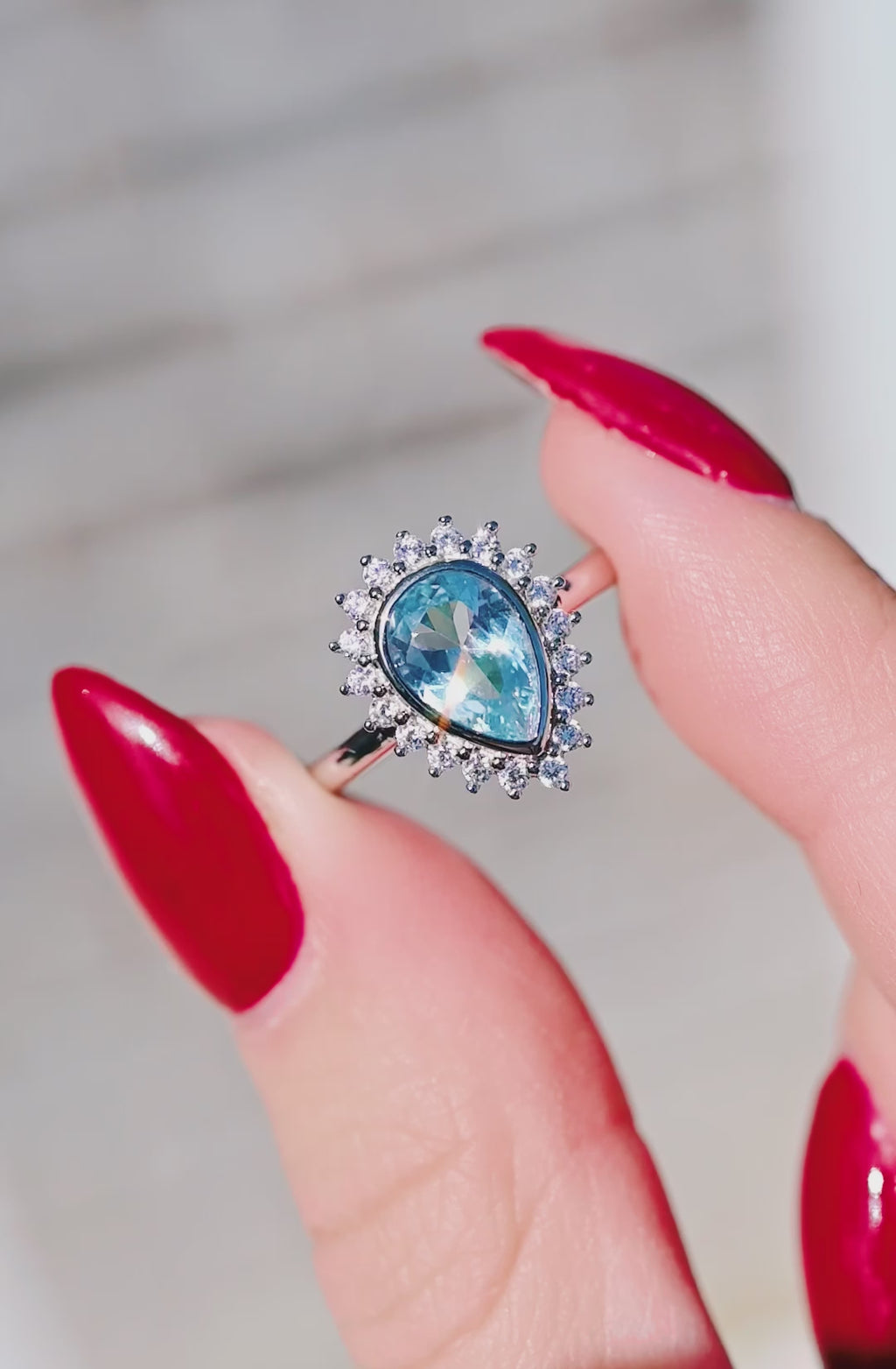 Anna Teardrop Aquamarine Ring- Sterling Silver
