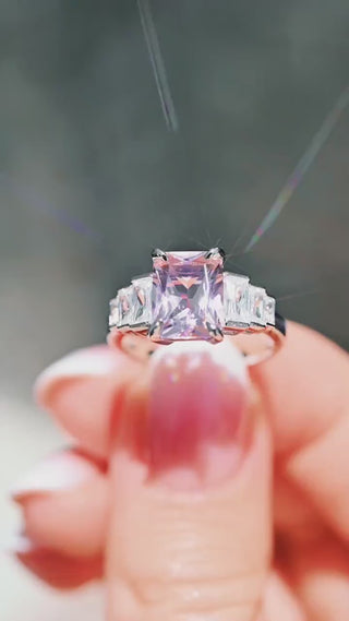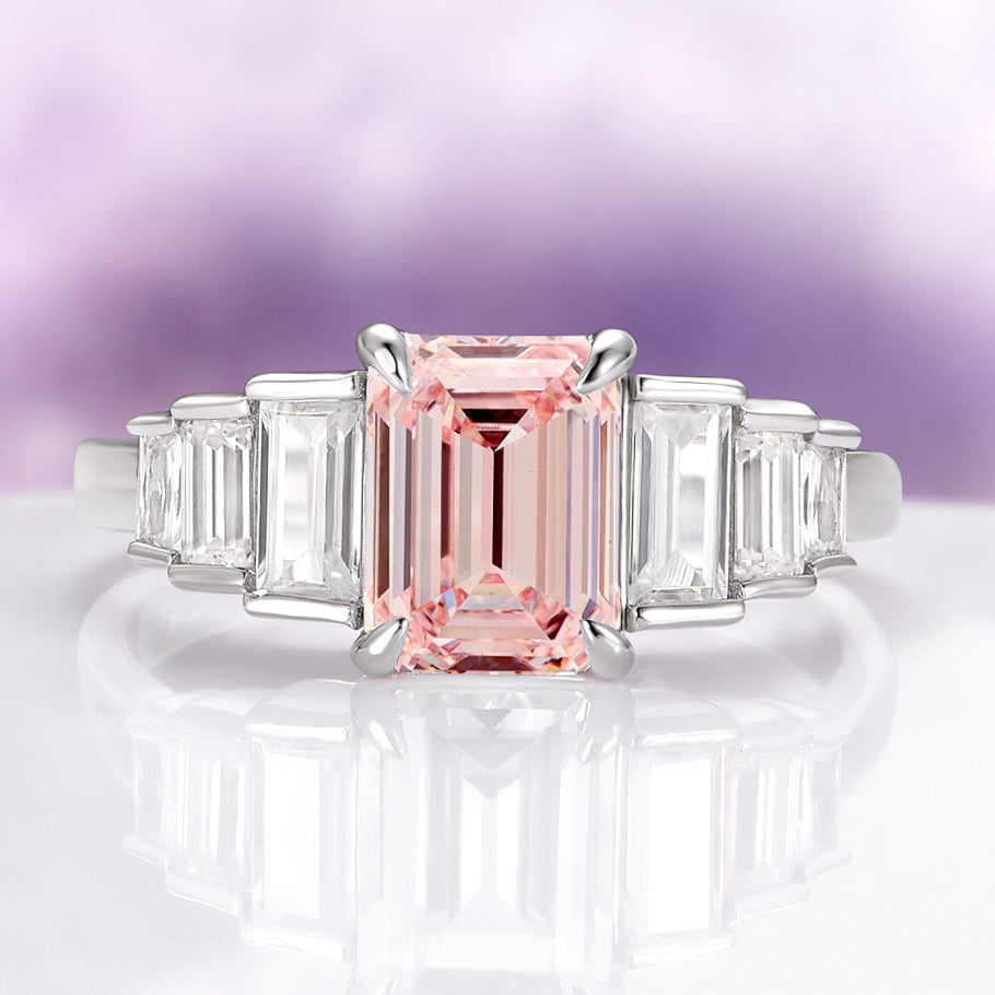 Art Deco Emerald Cut Morganite Engagement Ring in Sterling Silver