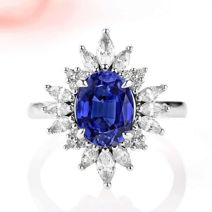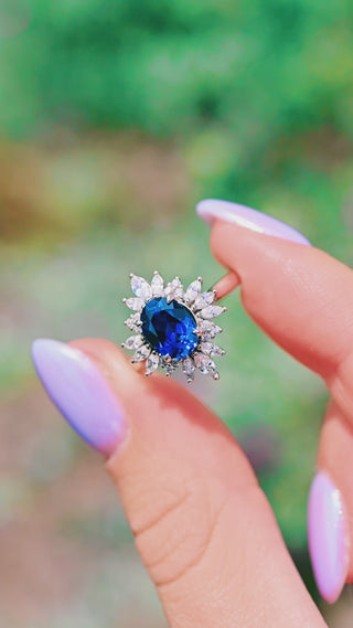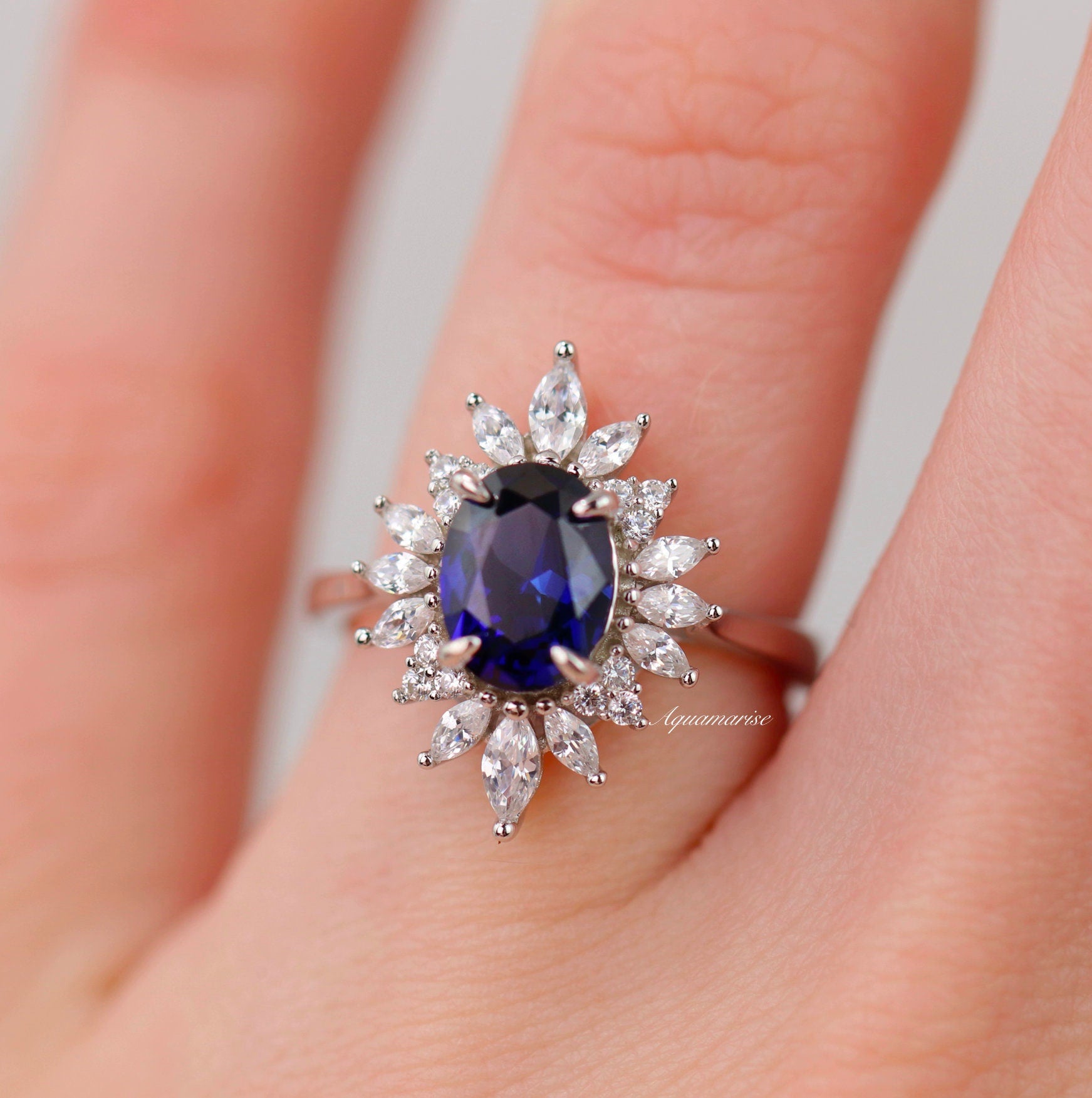 Aurora Royal Blue Sapphire Ring- Sterling Silver