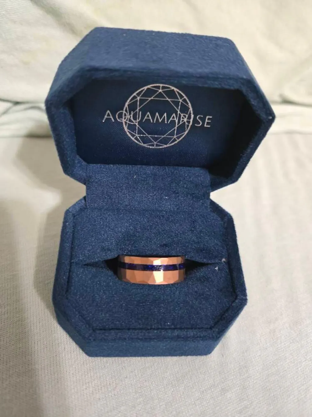 ►Material: Tungsten Carbide, Blue Sapphire, and Rose Gold.